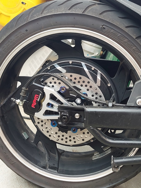 For rear brake disc replacement you do not need to disconnect wire harness, just losen two holders on swing arm that holds harness in place, losen three screws on disc (it is easier while wheel is still mounted), then take off all necessary parts (big nuts, screws from securing plates + those plates), then slide wheel back a little bit and that will make a space betheen wheel and swing arm for you to be able to replace the disc.Biglittlejoe hat geschrieben: ↑Do 29. Aug 2024, 05:55Kann man das hintere rad dafür abnehmen ohne die kabel zu lösen oder muss hier tatsächlich die verkabelung auch ab?