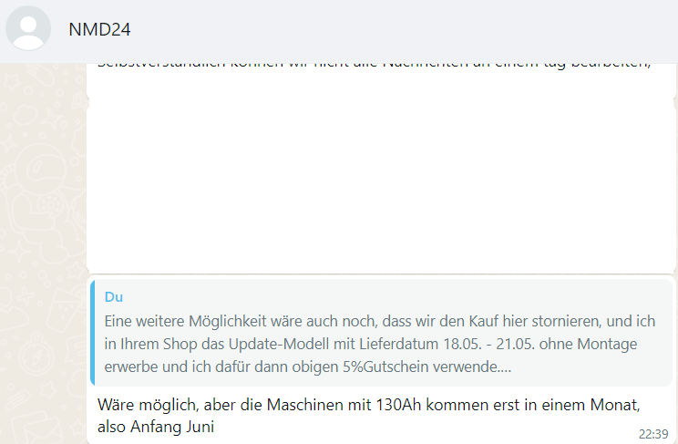 denn ich habe von NMD24 heute folgende Nachricht per WhatsApp erhalten: