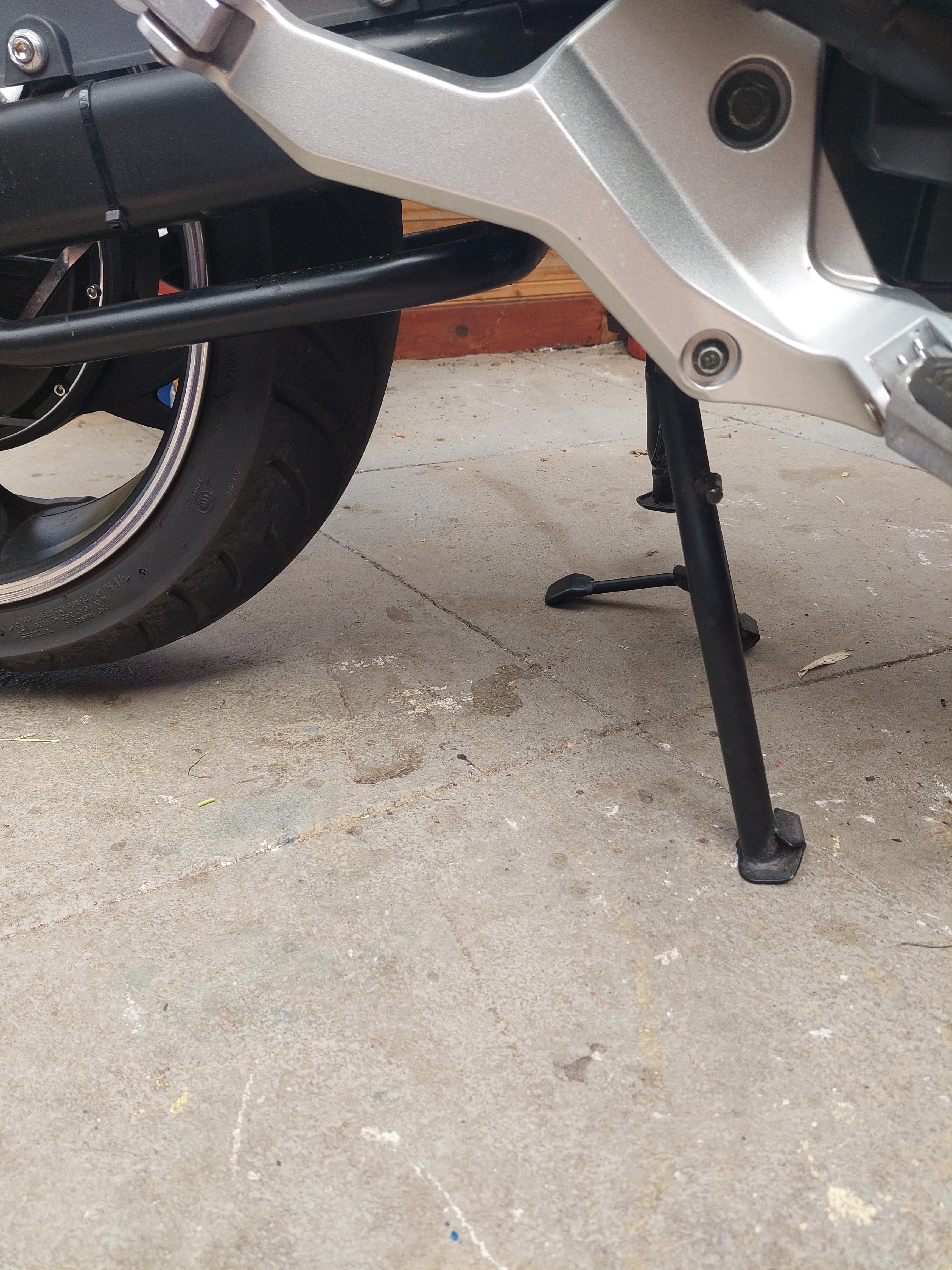 Als Erstes was mir auffiel, war der Hautständer, der absolut unsicher war, wenn man ihn benutzte, die Maschine neigte, nach vor weg zu wollen, daher habe ich in etwas modifiziert, ich zeige ein paar Bilder dazu.