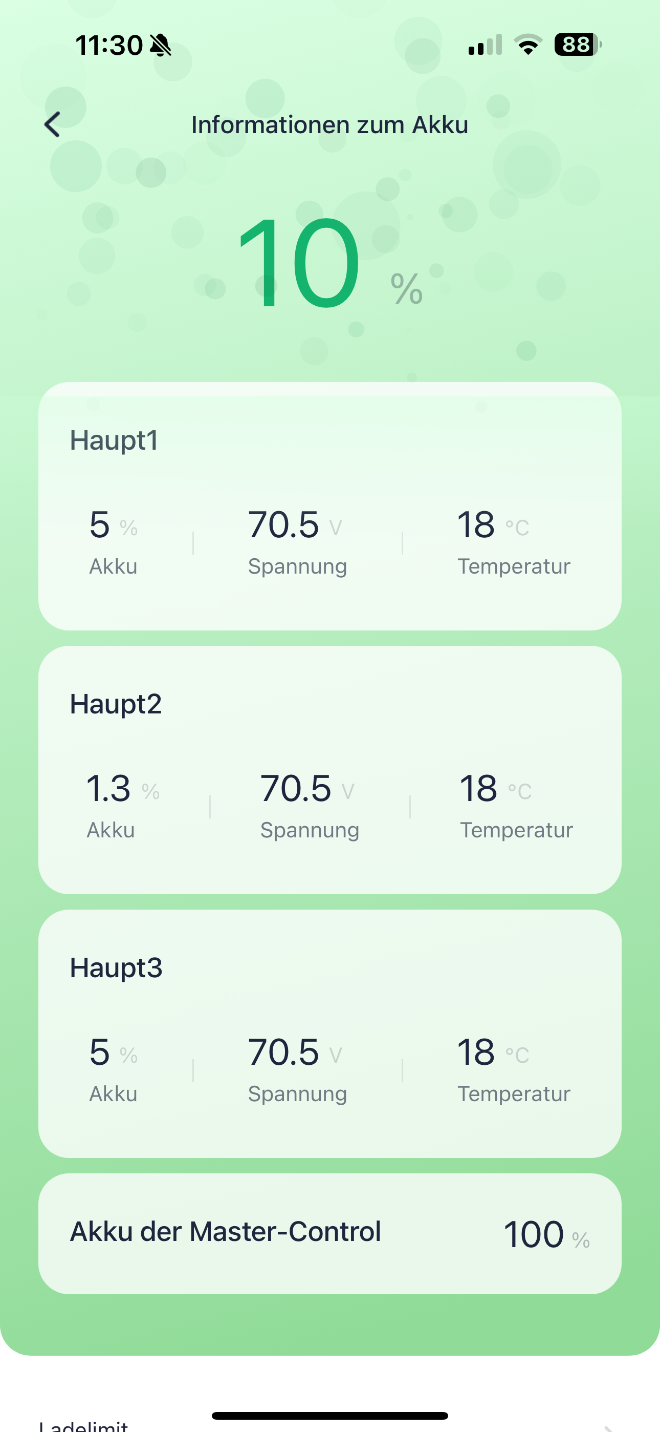 Ich hatte auch nach ersten Vollladung komplett unsinnige Zahlen bei den SoC der drei Akku.Wer ist online?