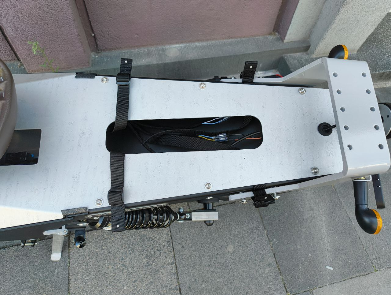 - Seitentaschenträger und Rändelschrauben für die Sitzbank: