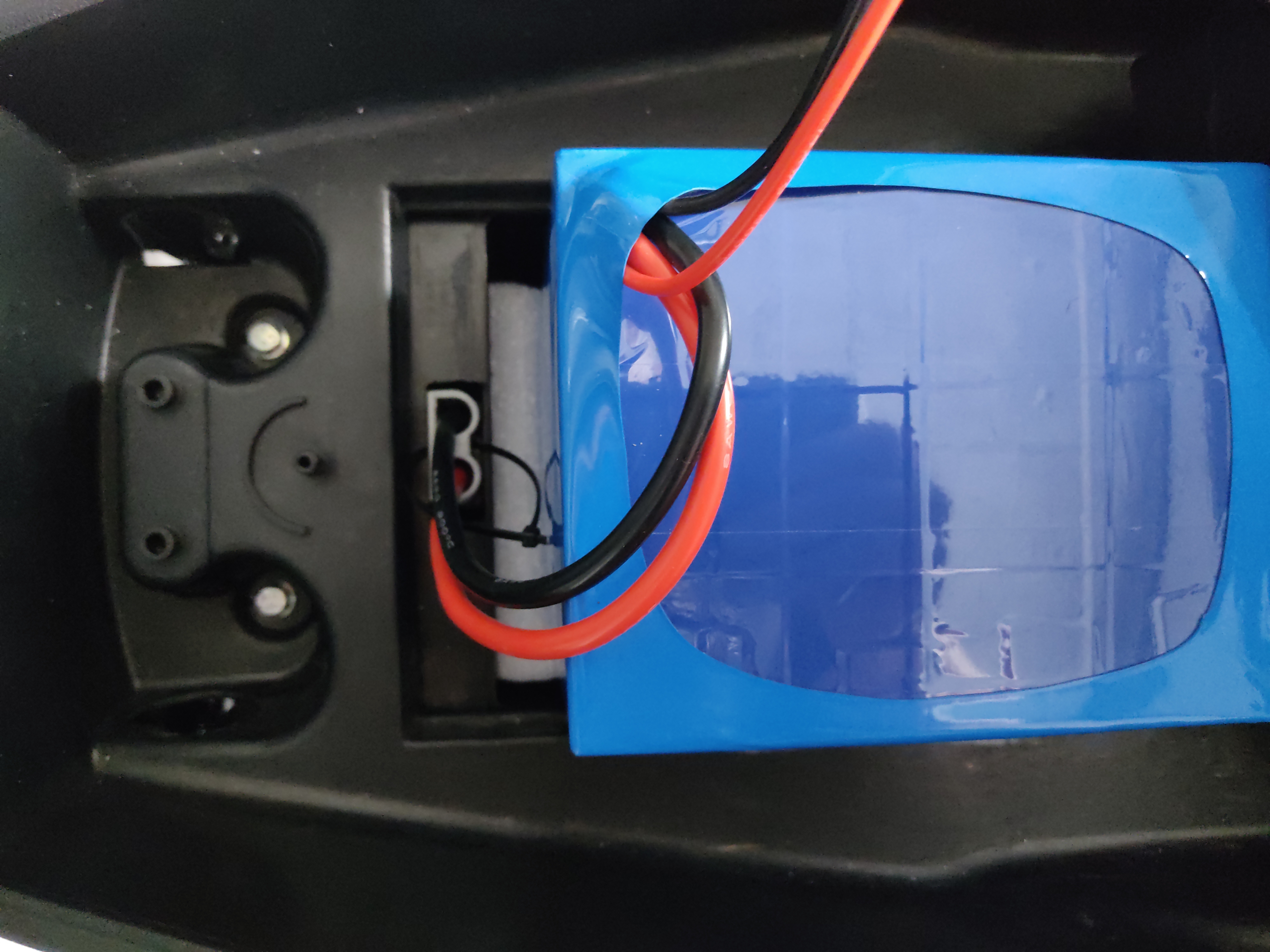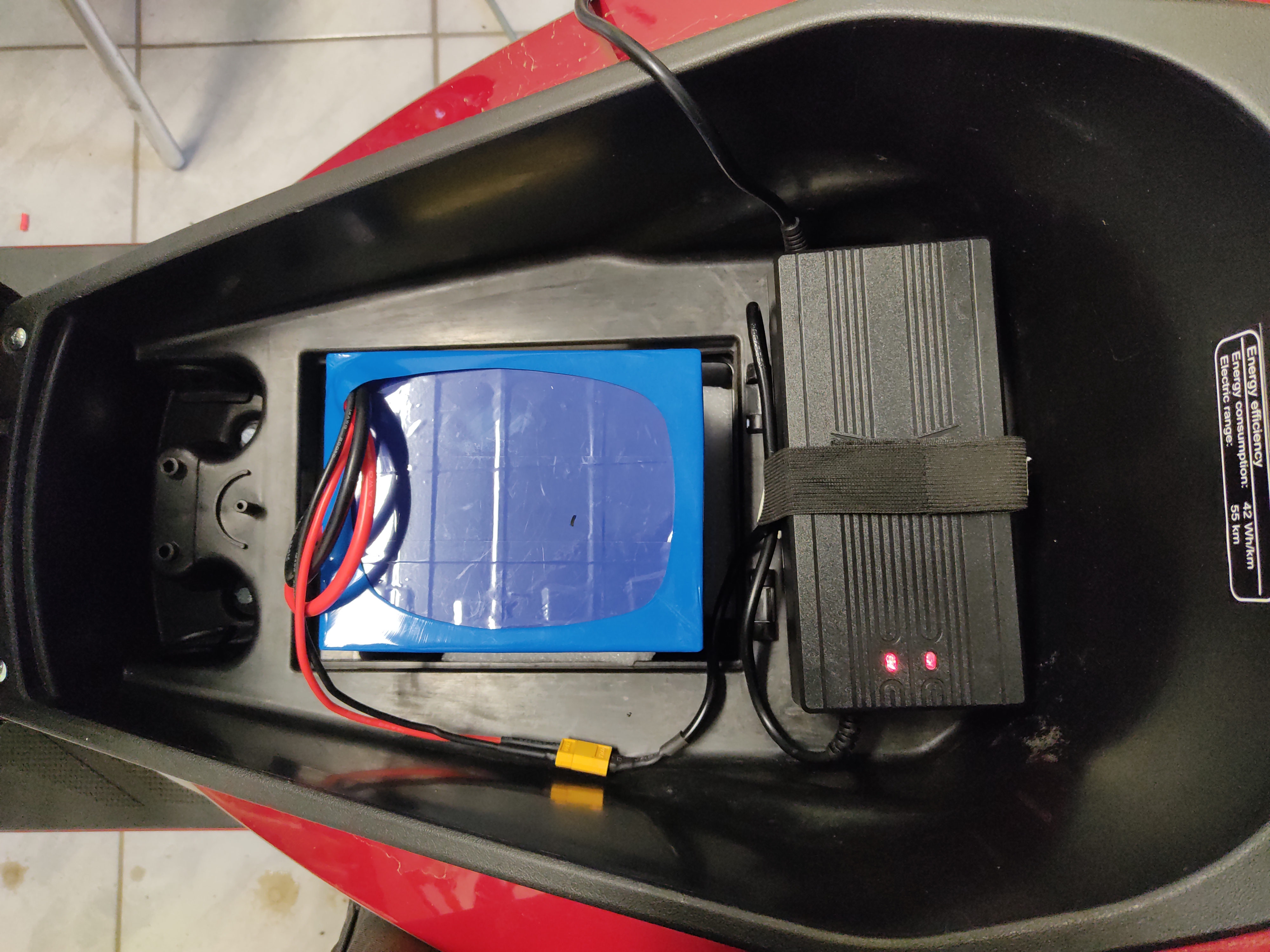 Da hab das neue Ladegerät im Roller fixiert mit Klettverschluss dazu zwei Einnietmuttern eingebracht und das klettband mit großen U-Scheiben und Schreiben befestigt.