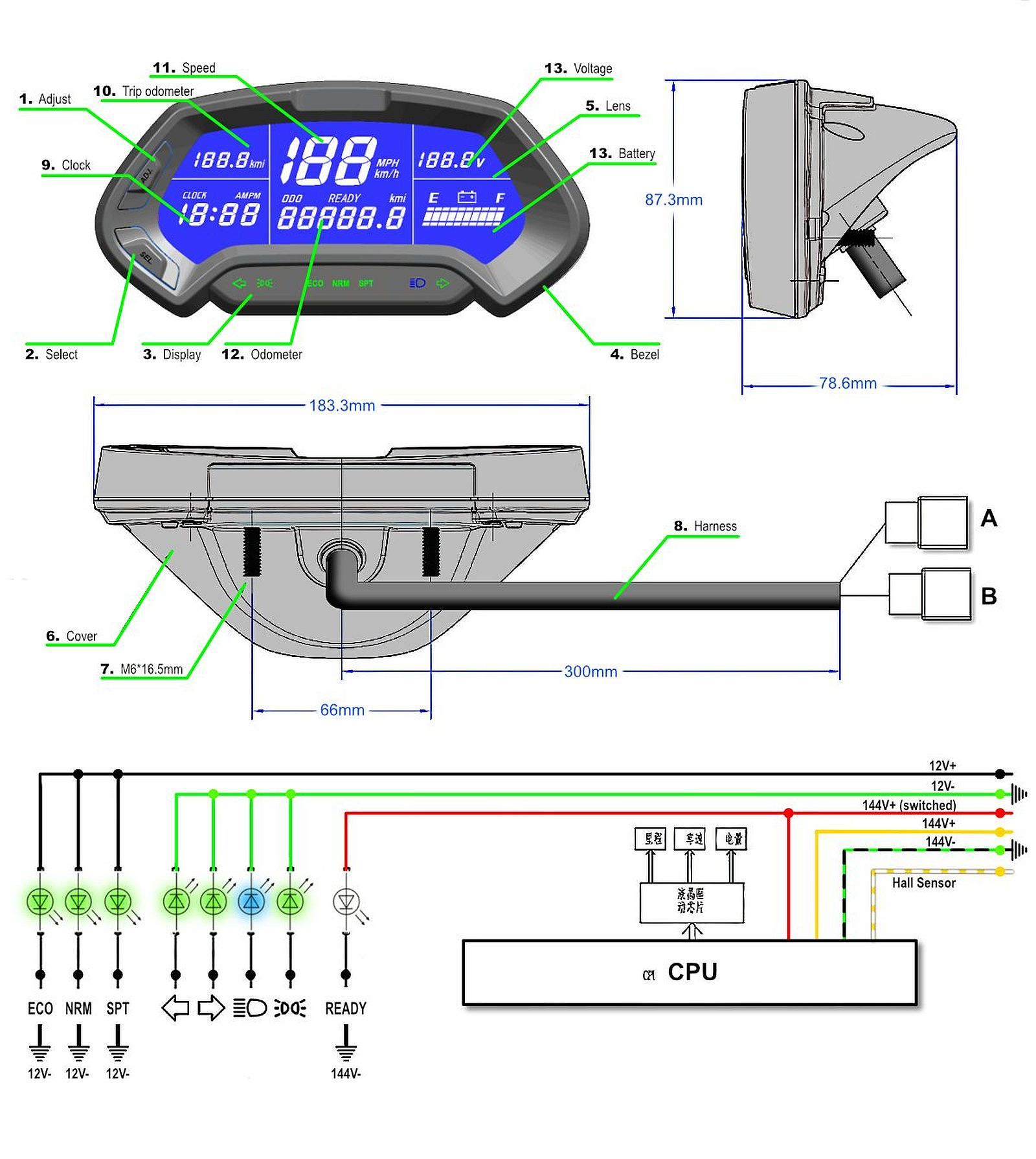 I'm planing to use QS Motor CT-22 48v 144v programmable electric motorcycle speedometer. ===============================================================================