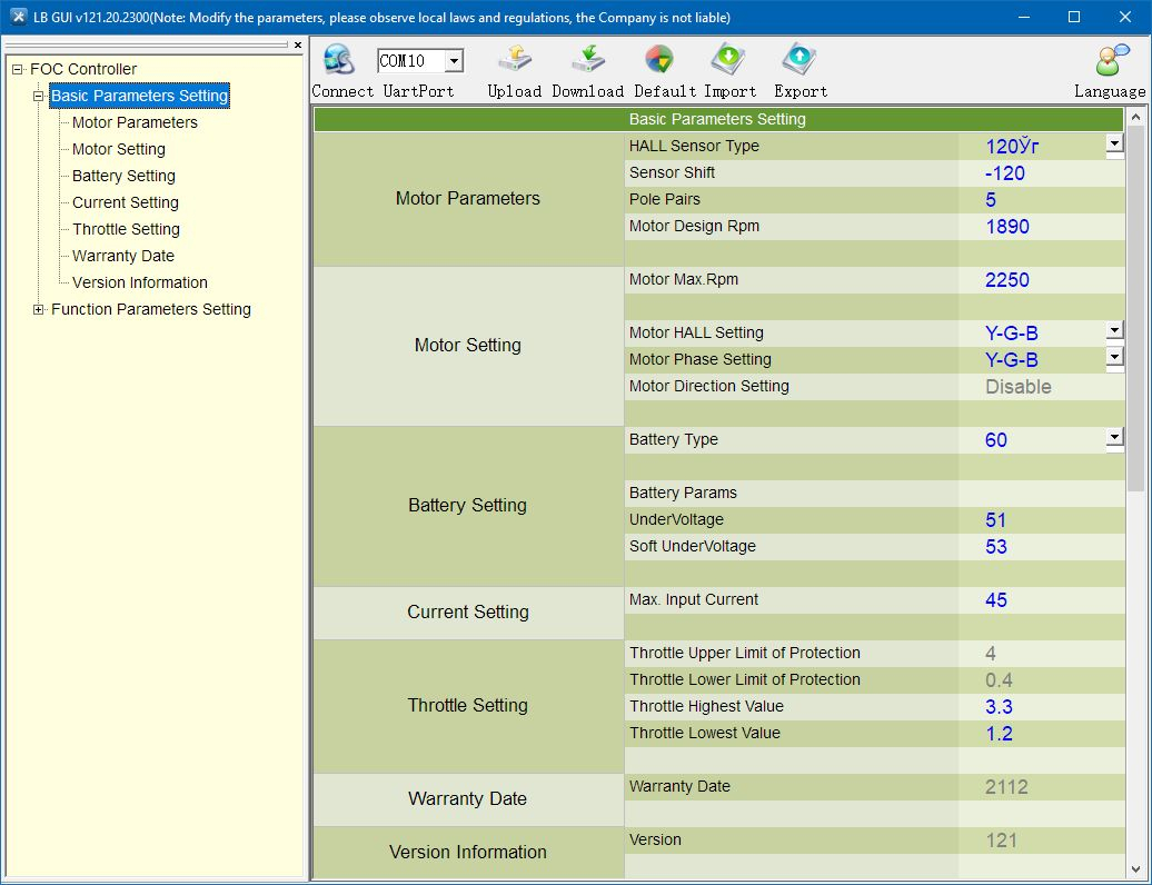 Die endgültige Version der Controller-Einstellungen LBMC072122SHK3AP-M29 (LBC100.029D). Jetzt funktioniert alles perfekt. Die Höchstgeschwindigkeit beträgt 58 km/h.