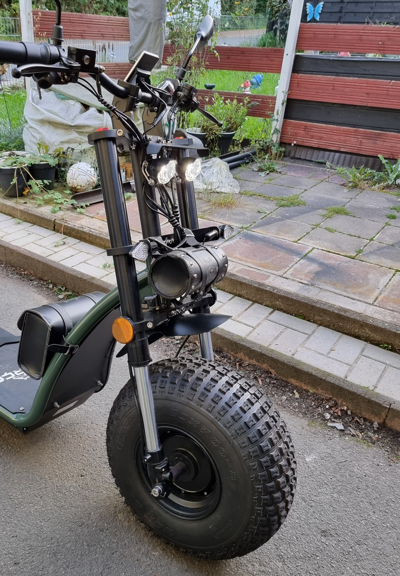Also ich werde wohl so eine Anschlussdose bzw. Verteilerkasten mit IP65/IP67 wasserfest zwischen vors Blech beim Vorderrad montieren. Geht momentan mit 16x12x9cm in schwarz. Dann passt auch der 12V Umwandler rein und evtl. noch Phasenverteiler für den HUB-Motor o.ä..