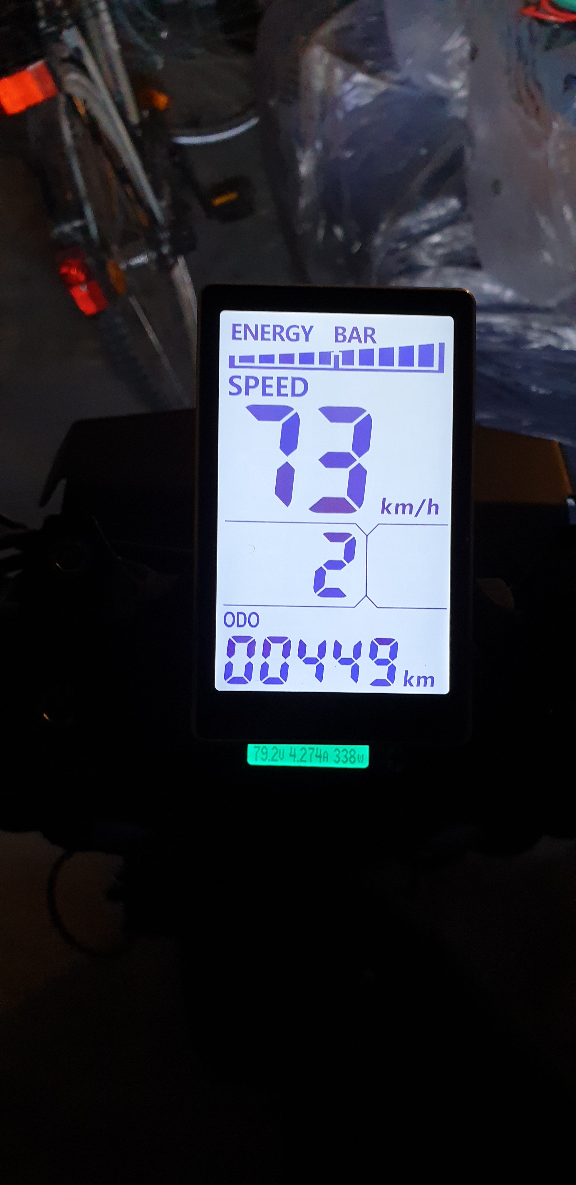 ... mit knapp 80 Volt bei 73km/h (65km/h GPS). Mehr geht jetzt net, sonst muss ich fleißig löten. Aber das ist nun wirklichmal ein Beweis dafür, was geht und wie etwas limitiert ist.