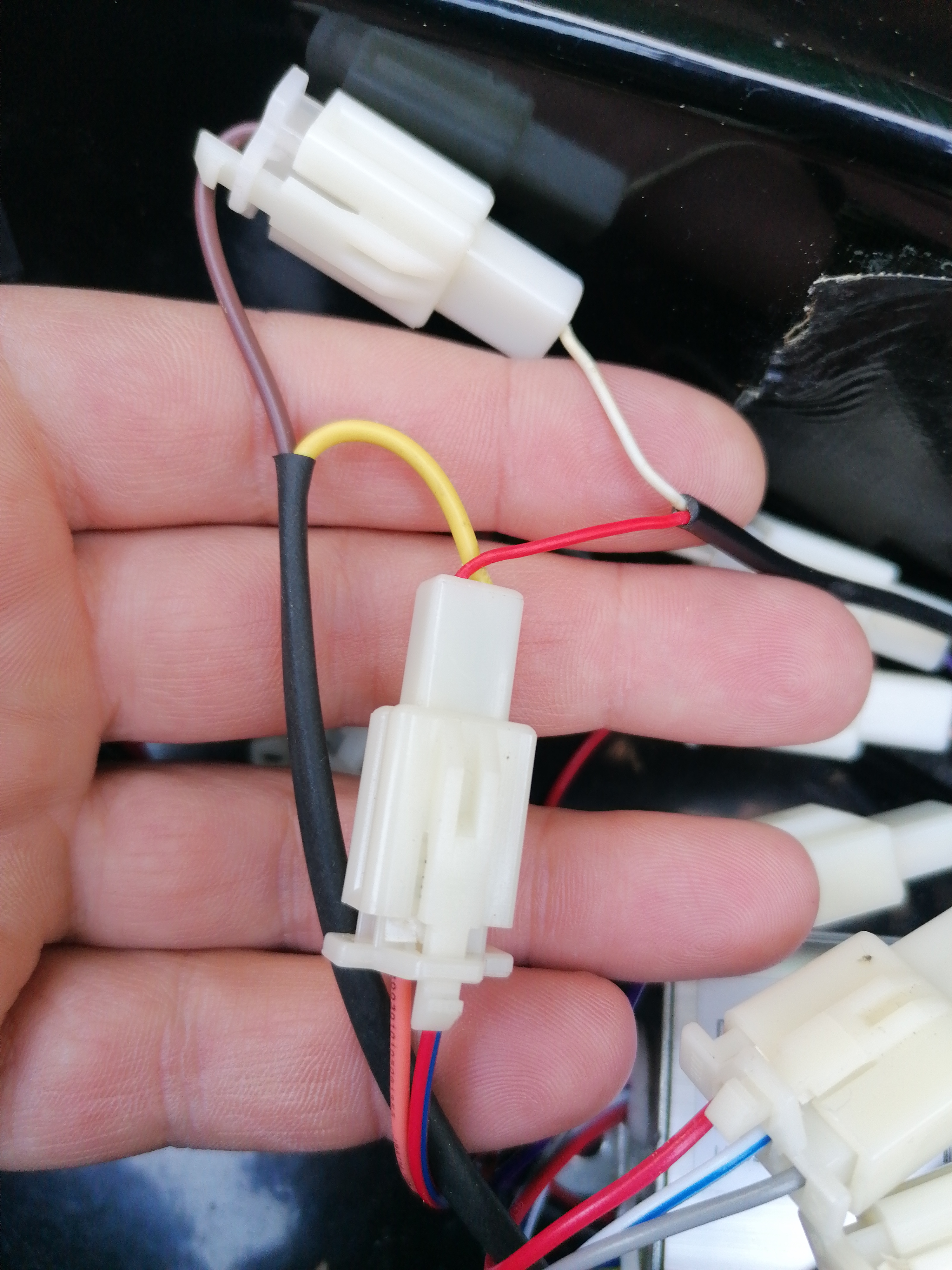 Dann habe ich noch den Kabel. Ein dünner Rot/Weiss der von vorne kommt. Am weißen Kabel ist eine Kupplung. Und am Roten ist einen Kupplung mit dem gelben Kabel von Endschalter von dem Ständer. Von dem Ständer Endschalter geht ein Gelber Kabel der mit der Kupplung mit dem Roten dünnen ist und der braune Kabel in einen Stecker der mit Dr kupplung von dem Gelb/Roten verbunden ist. Irgendwie ist mir das unlogisch.