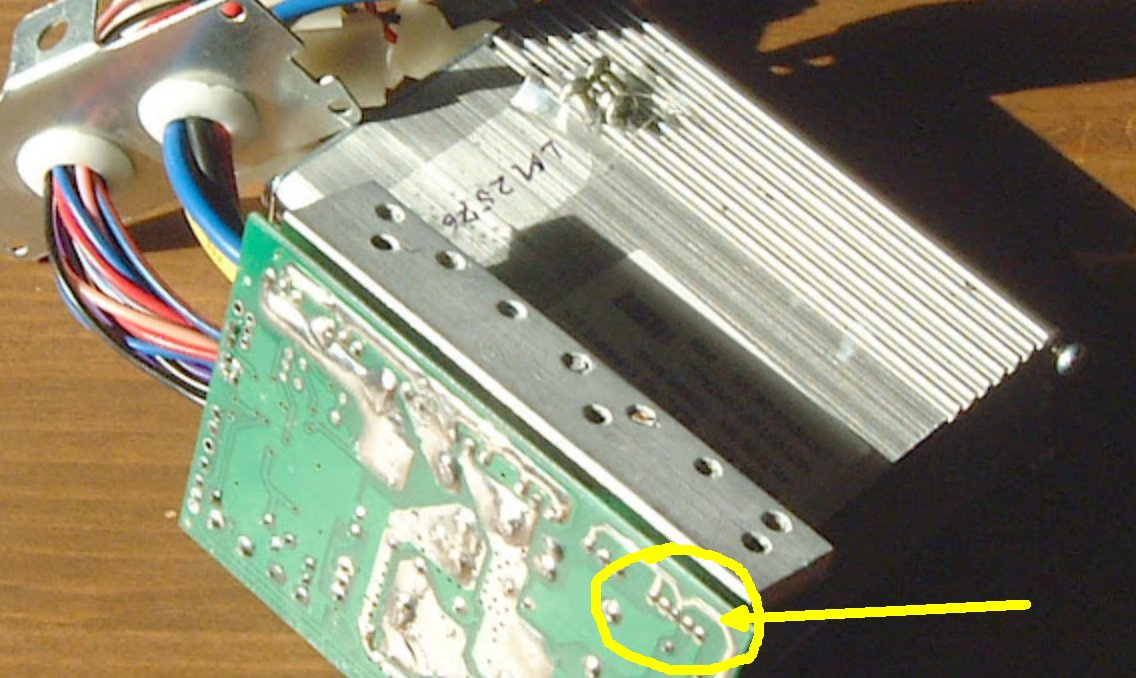 Der Schaltkreis LM 2576T befindet sich nach meiner Erkenntnis ganz links am Kühlkörper (in Deinem Bild oben rechts). Es ist der einzige mit 5 Anschlüssen, alle anderen haben 3.
