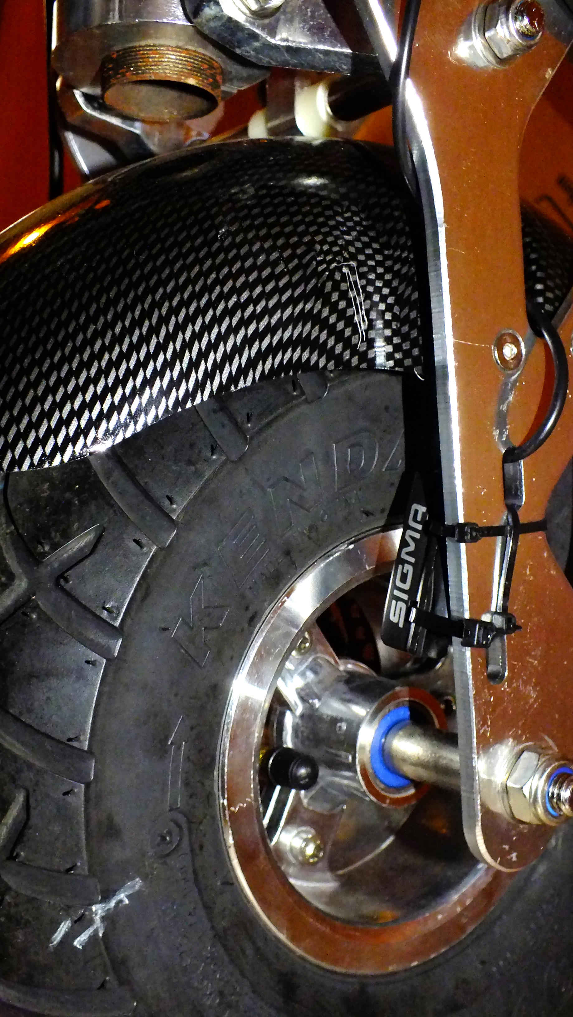 Den Geber habe ich auf der rechten Seite mit einem Röllchen aus Plast darunter mittels Kabelbindern befestigt.