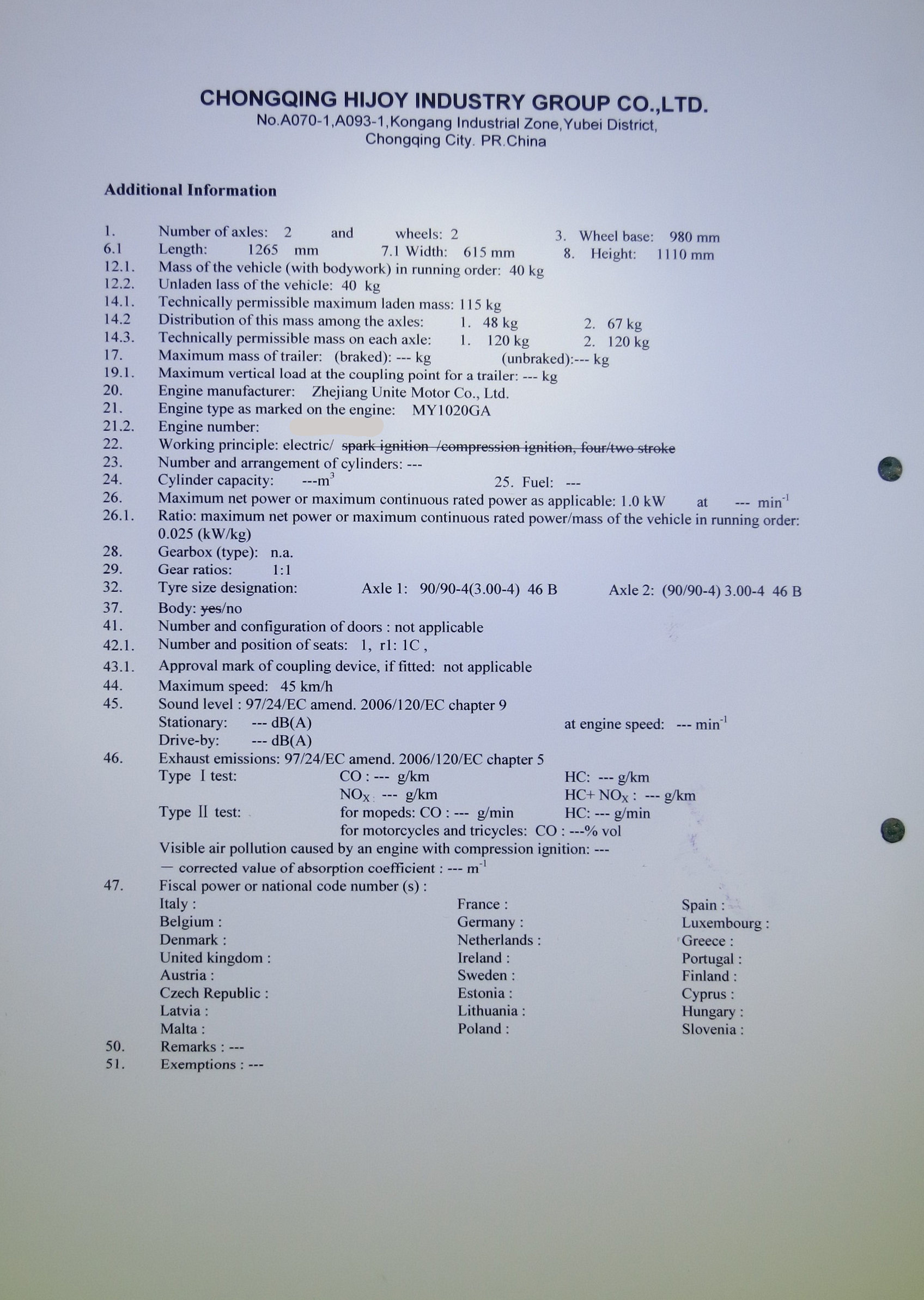 habe mir den Mach 1 Roller zugelegt (Leistung unbekannt), laut dem Verkäufer hat das Teil eine Straßenzulassung, aber die Papiere hatte er nicht mehr und es besteht auch keine Chance mehr, daran zu kommen.