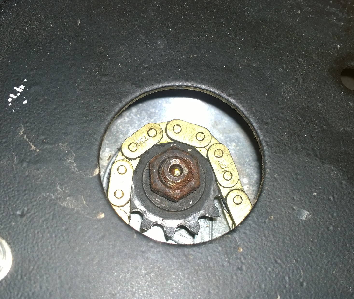 Das ist ein Bild vom Motorritzel vorn, da sieht man nichts von der Hinterradachse drauf