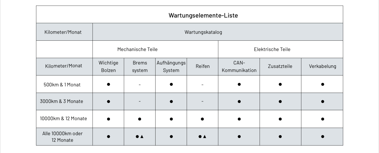 NAXEON schreibt den ersten “Einfahrservice“ bereits nach schmalen 500 km vor, dicht gefolgt vom Nächten der dann bei 3.000 km ansteht. Danach beträgt der regelmäßige Serviceintervall 10.000 km bzw. 12 Monate (siehe Foto).