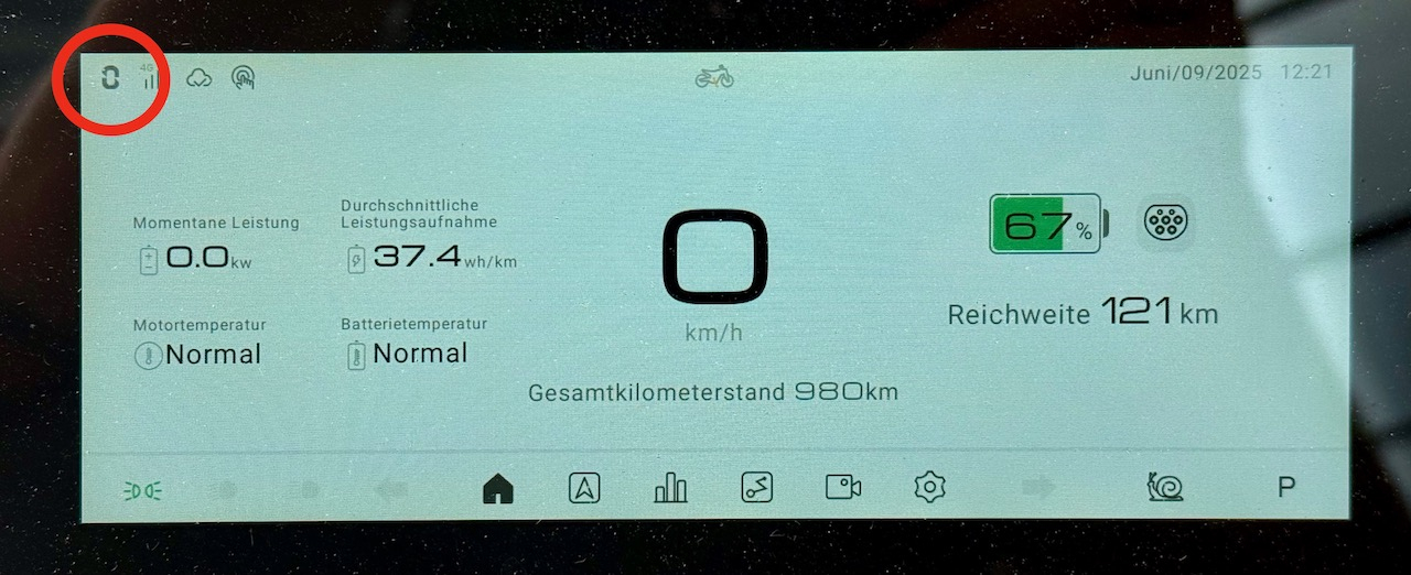Weiß nicht ob das READY bei Naxeon das Gleiche bedeutet wie bei der Surron. Da bedeutet READY, dass das Moped ist "Scharf-geschaltet" und wird beim Drehen des "Gas"-Griffs losfahren. Wenn READY nicht aufleuchet tut sich nichts, wenn man Gas gibt. Also Key-Switch auf "EIN", Ständer "OBEN", Kill-Switch auf "EIN" und "READY"-Knopf am rechten Griff einmal gedrückt. Schon kann die wilde Fahrt losgehen. "Ready geht aus, bei Ständer "UNTEN" oder Kill-Switch "AUS".
