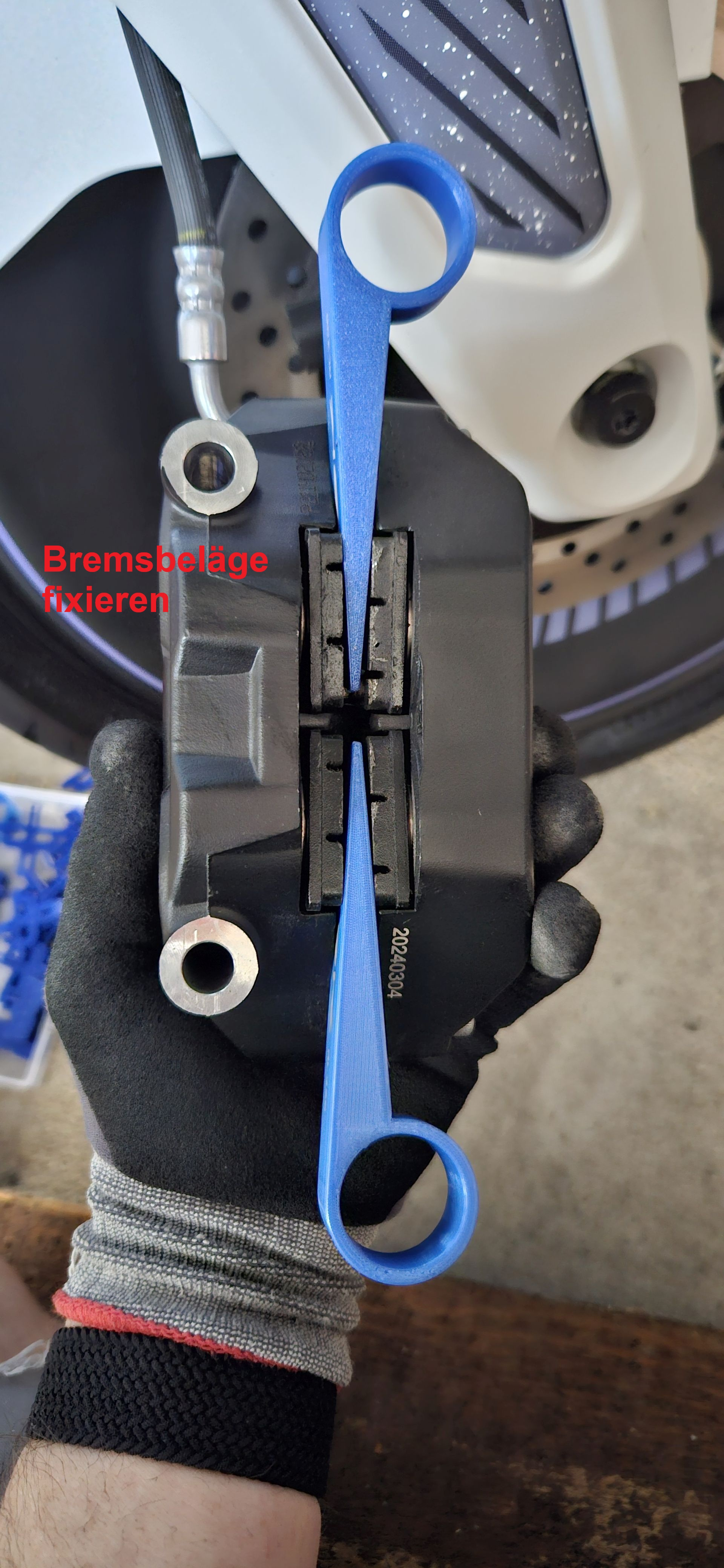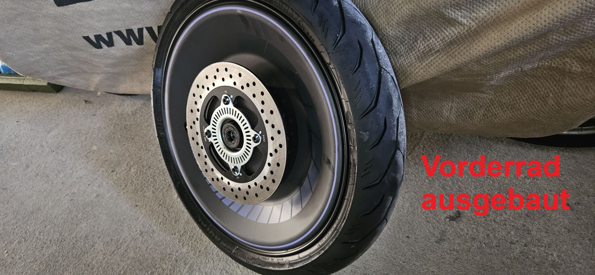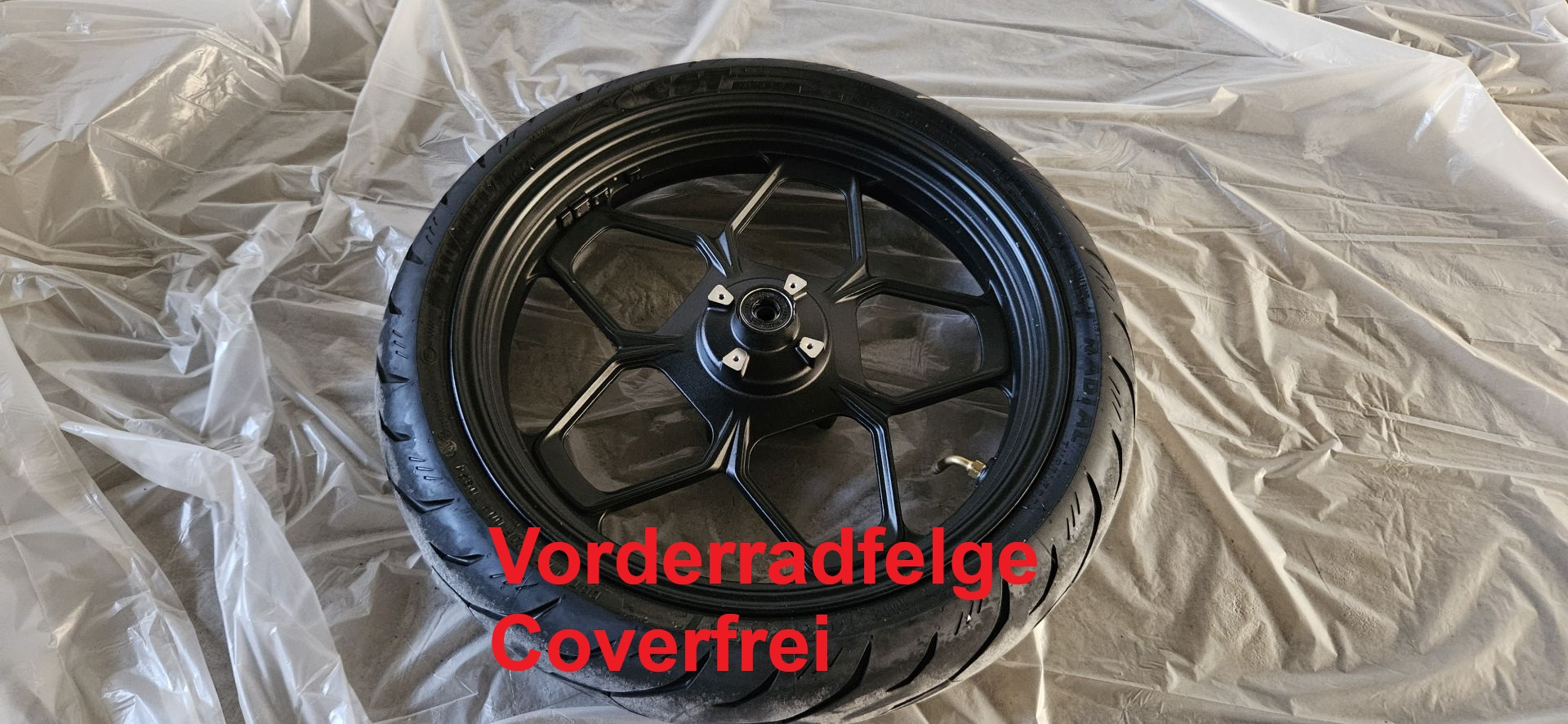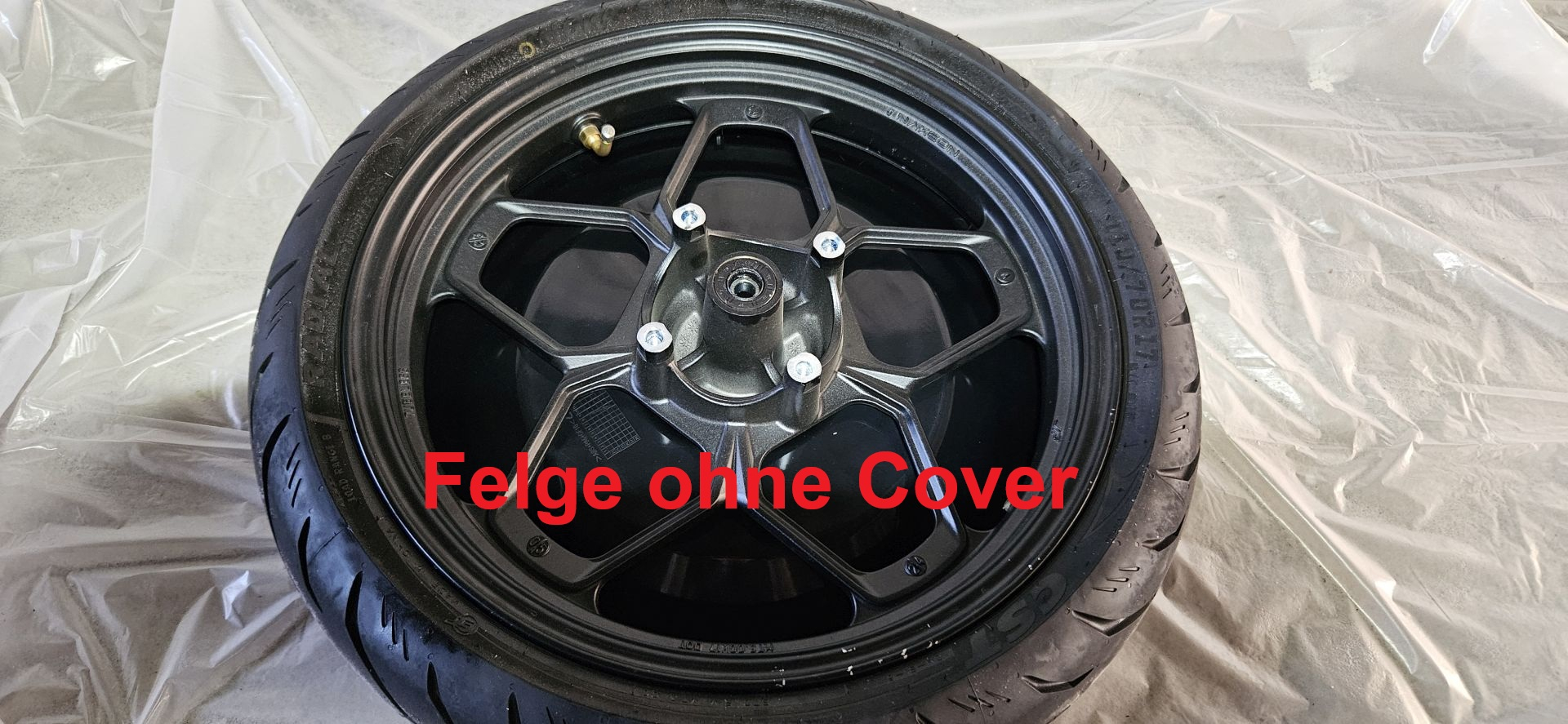 Ich habe mich bewusst für eine nicht haftende Einfärbemöglichkeit entschieden da ich zunächst testen wollte ob mir eine weiße Felge ohne Cover überhaupt gefällt / zum weißen Motorrad passt.