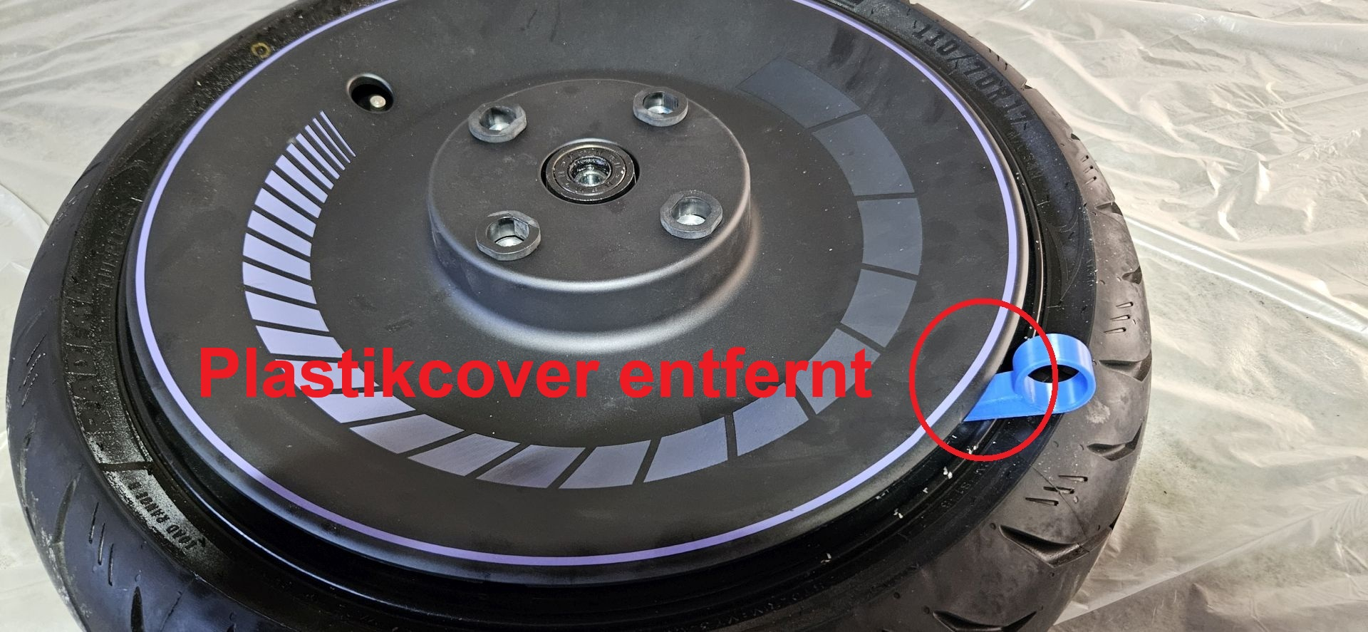 Hinterrad Optiktuning folgt später (weil diffiziler wegen des Radnabenmotors) nach dem Geburtstag meiner Partnerin.