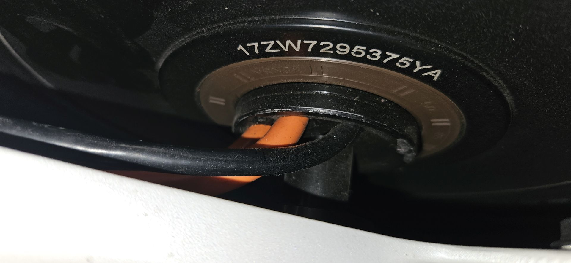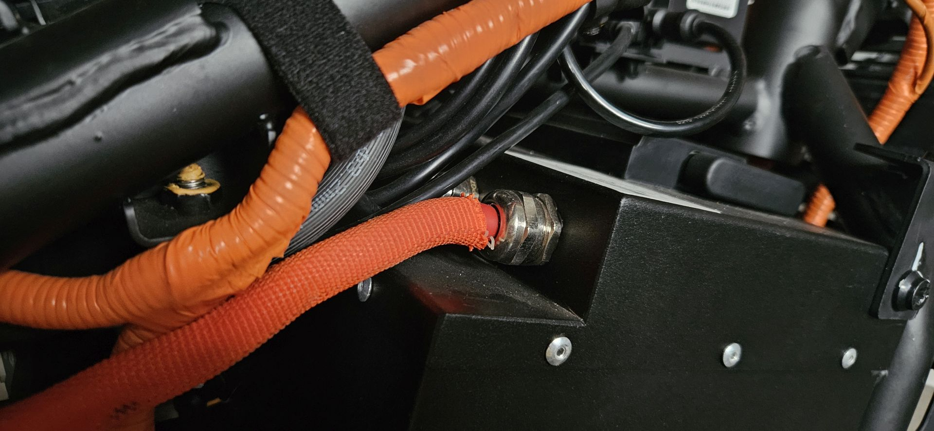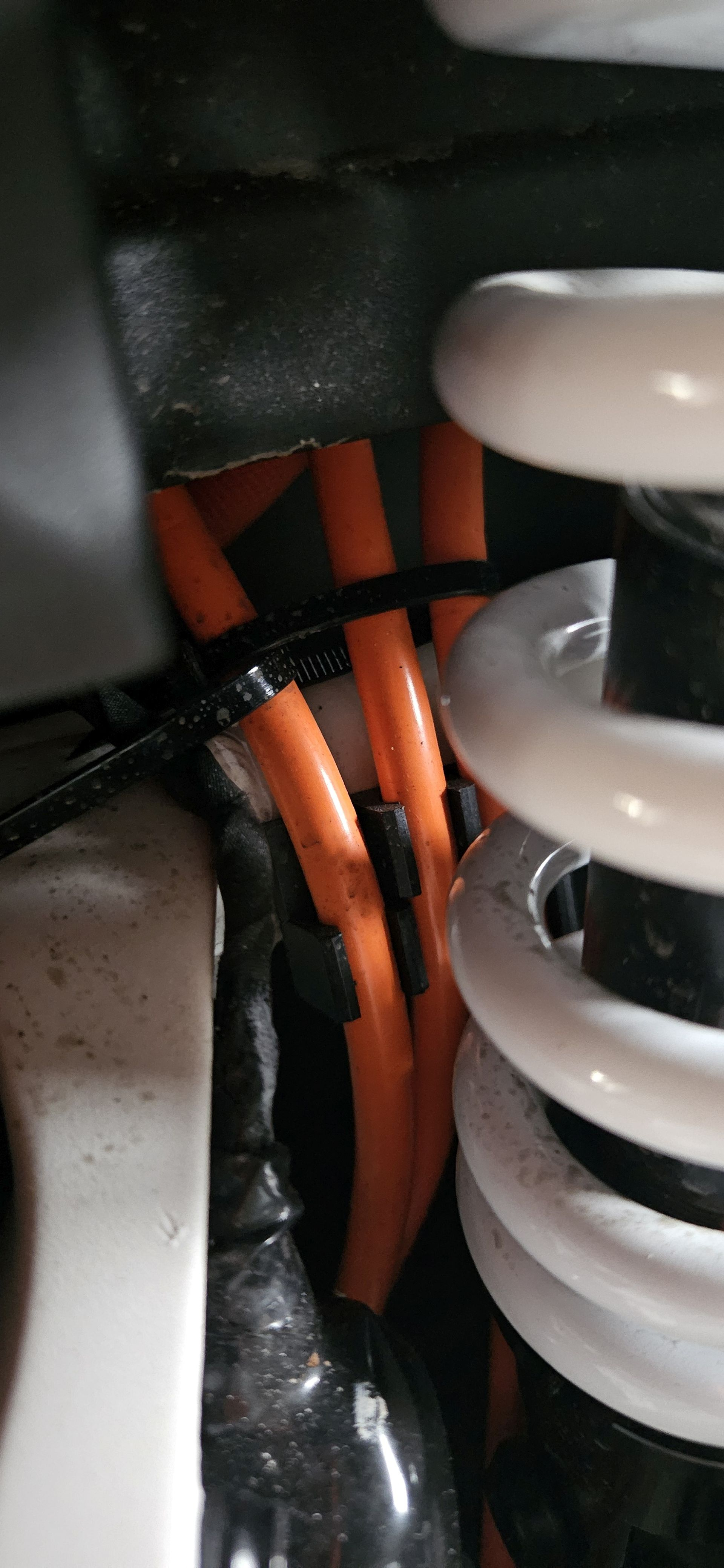 Leider habe ich bei genauem Hinschauen keinen Stecker gesehen mit dem man einfach die Stromverbindung zum Radnabenmotor lösen kann. Die orangenen Kabel laufe bei meiner Pro in Richtung der Unterseite eines alufarbenen Gehäuses. Wie man die Kabel vom Strom trennt und das Hinterrad ausbauen kann prüfe ich wenn die Vorderradfelge fertig lackiert, der Reifen aufgezogen ist und ich das Vorderrad wieder montiert habe.