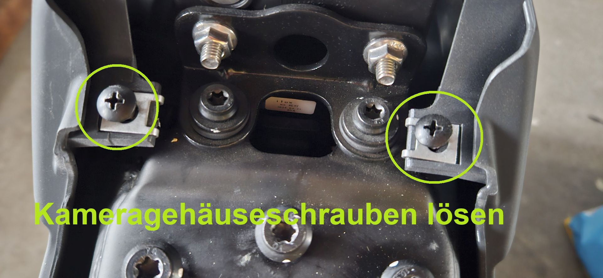Das Kameragehäuse ist mit 2 schwarzen Kreuzschlitzschrauben befestigt, dass Datenkabel verfügt über eine lösbare Steckerverbindung.