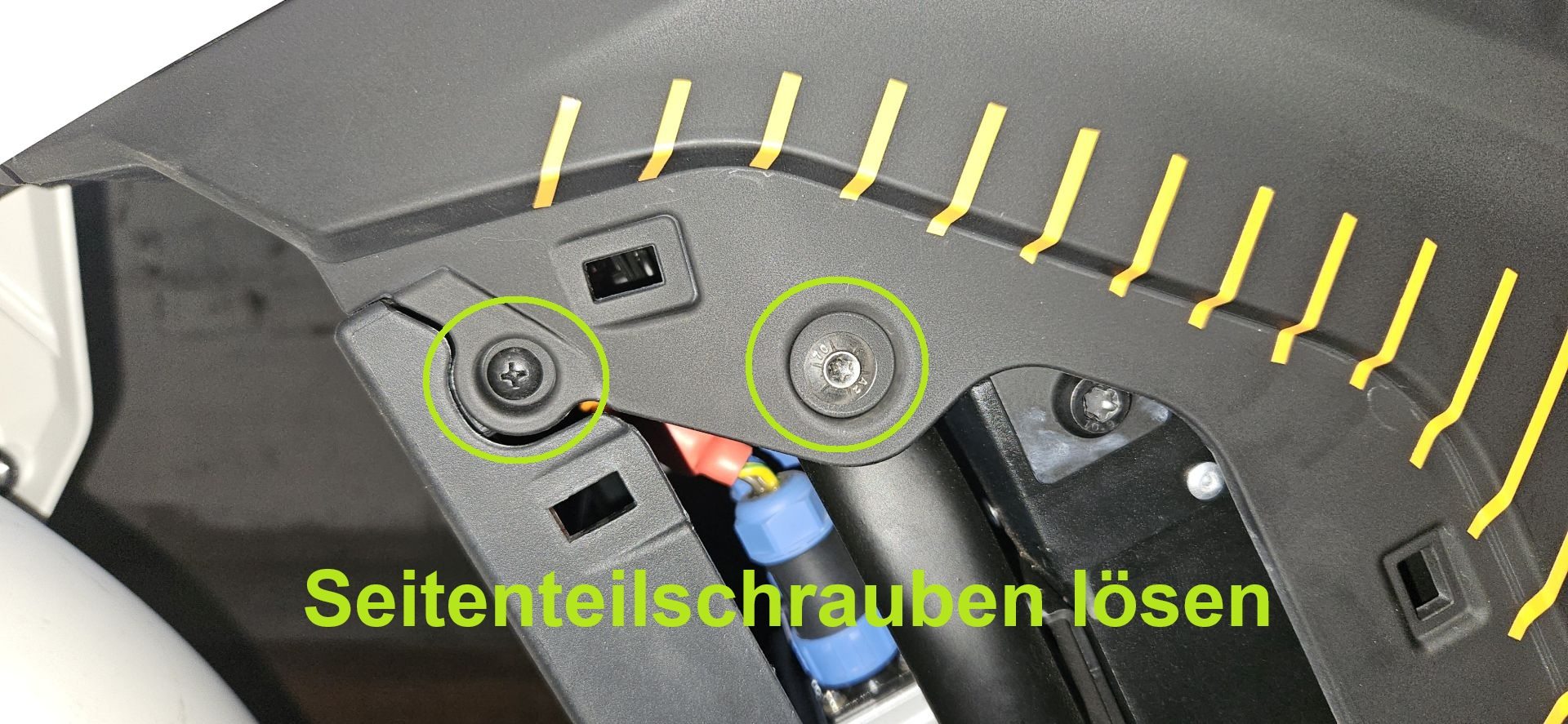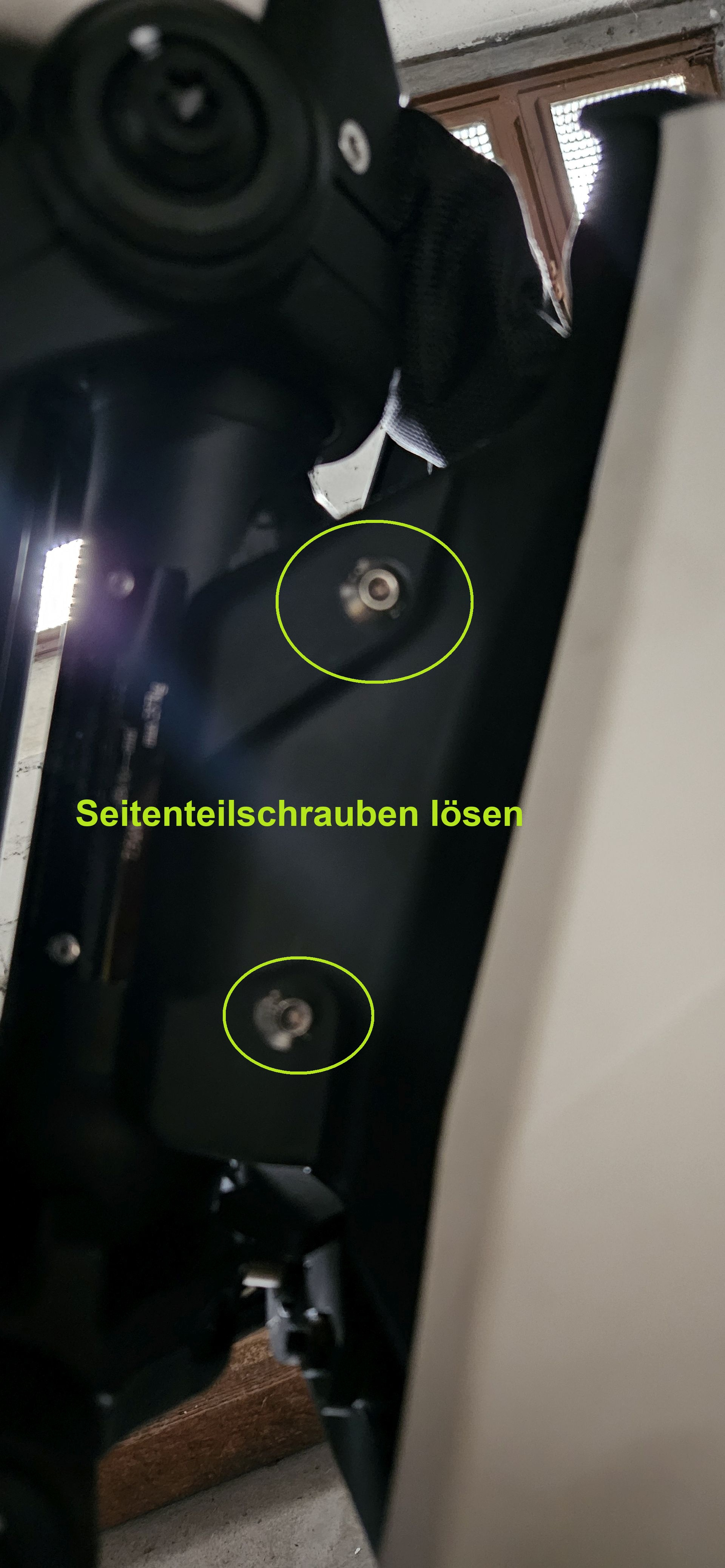 Ein waagerechtes Element unter der Sitzbank mußte ich zur Demontage der Seitenteile nich abschrauben.