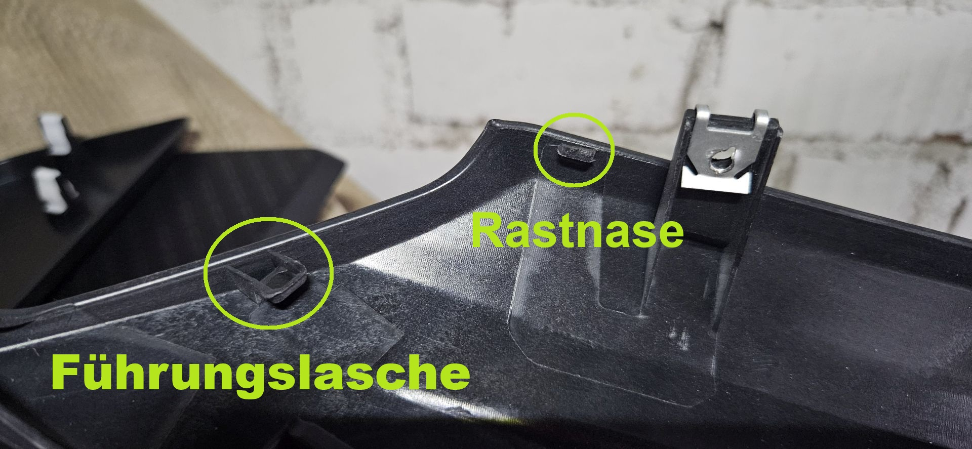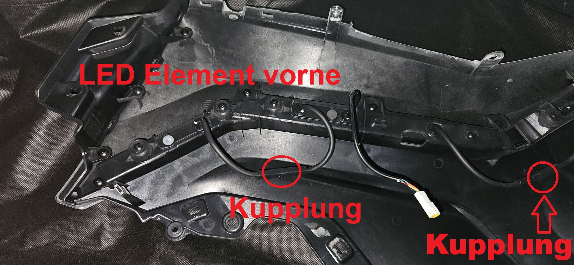 1) die LED Seitenbeleuchtung besteht aus 3 einzelnen LED Bausteinen wobei die beiden "äußeren" Elemente mit dem mittleren Element zusammengesteckt werden - dieses wird dann mit dem jeweiligen für die Seite R oder L zuständigen Zentralstecker verbunden.