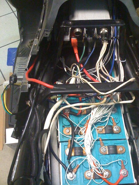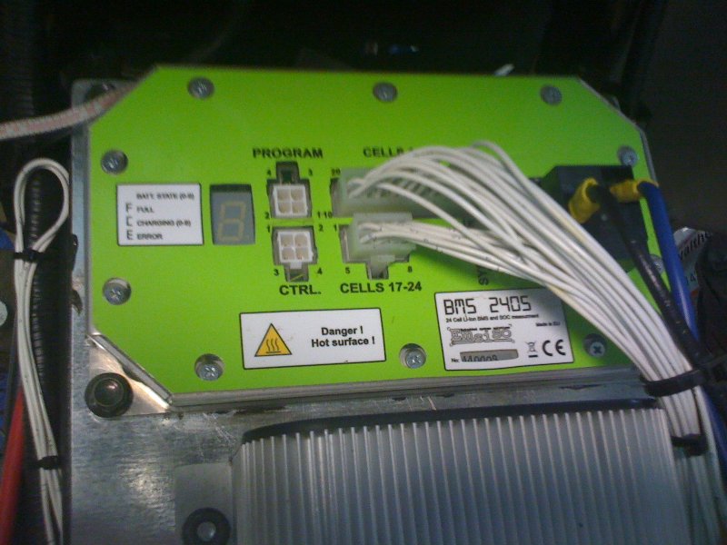 Entgegen der Aussage vom Verkäufer ist das BMS aber noch an Bord. Die vielen Einzelspannungskabel gehen hinter dem Controller.
