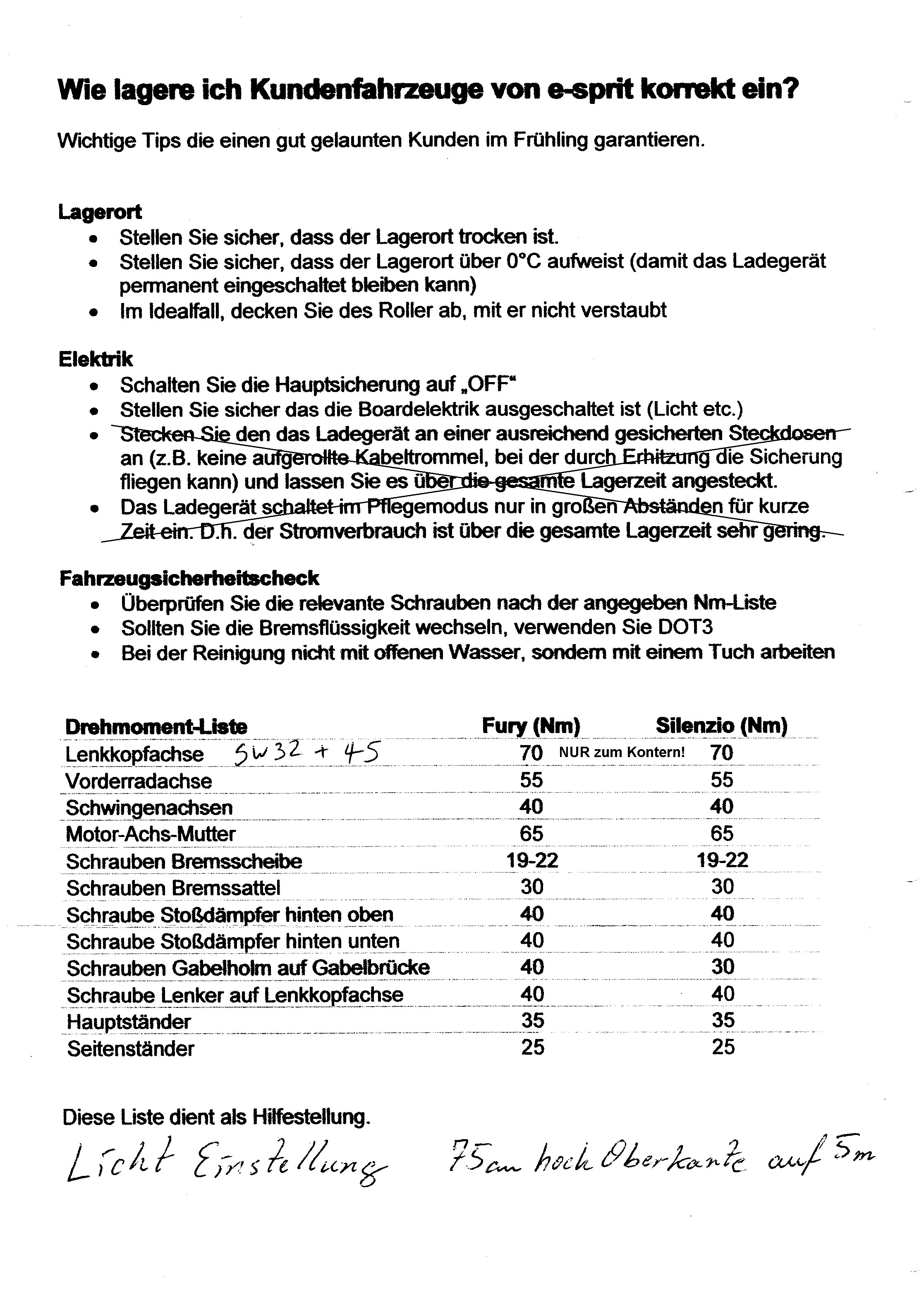 Und dann noch diverse Werkstattdaten, die mein damaliger Händler zusammengestellt hatte: