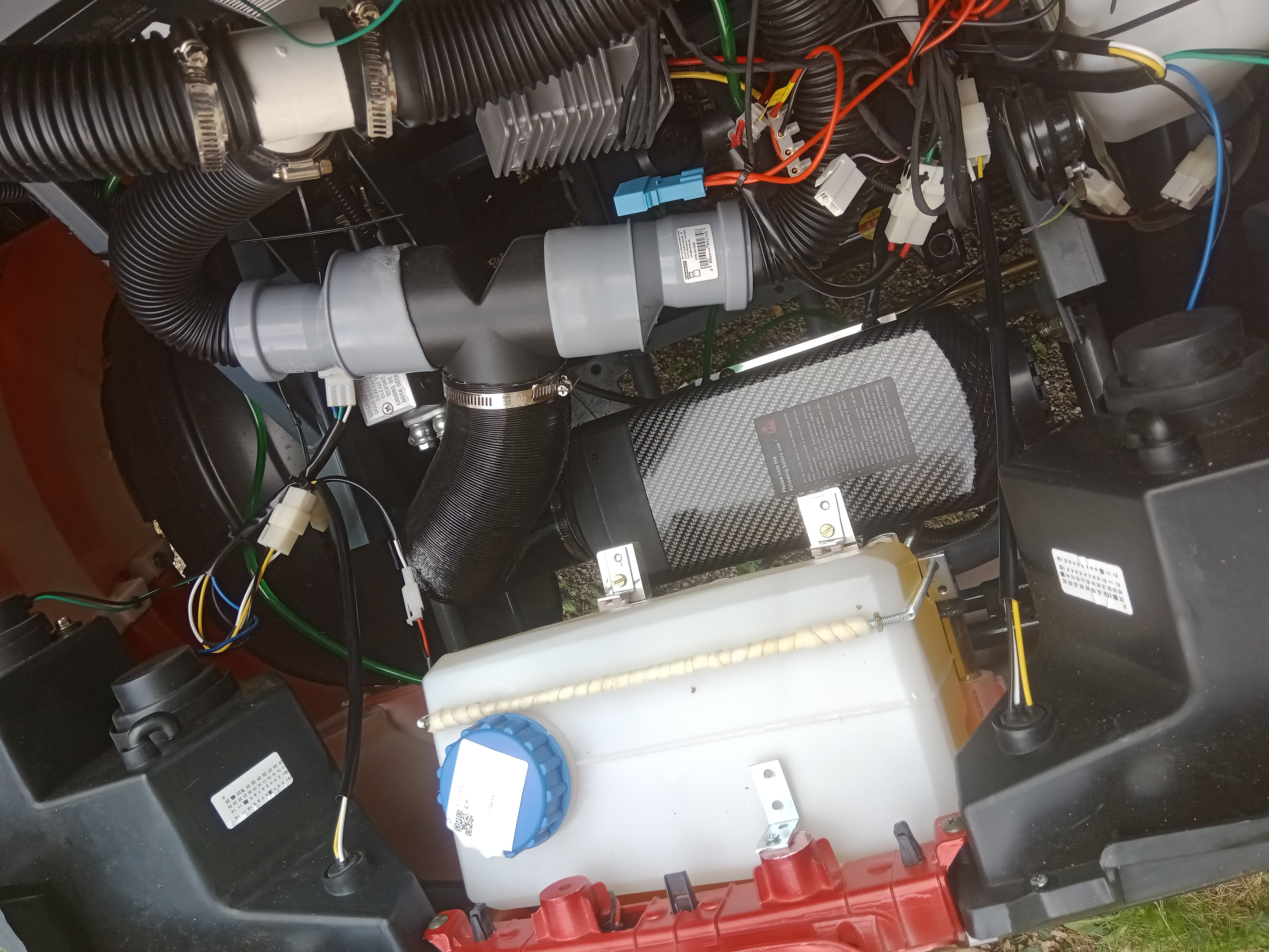 .Da der Auspufftopf vorn rechts unterm Fahrzeug ist und ich im Stand getestet habe,ist etwas Dieselgeruch in den Innenraum gelangt.Um das Bremspedal ist ja ein ordentlicher Schlitz zur Außenwelt,wo es auch etwas durchzieht.Mal sehen,wie ich das ändern kann.Ich werde auch mal schauen ob ich ein passendes Edelstahlwellrohr finde,um die Abgase nach hinten zu führen.Da der Brenner 2-3min. Abschaltzeit braucht um abzukühlen,werde ich noch eine direkte Spannungsversorgung vom Akku legen.Dann bleiben auch die Einstellungen gespeichert.Eine reine Lüfterfunktion ohne Heizung ist auch möglich übrigens.