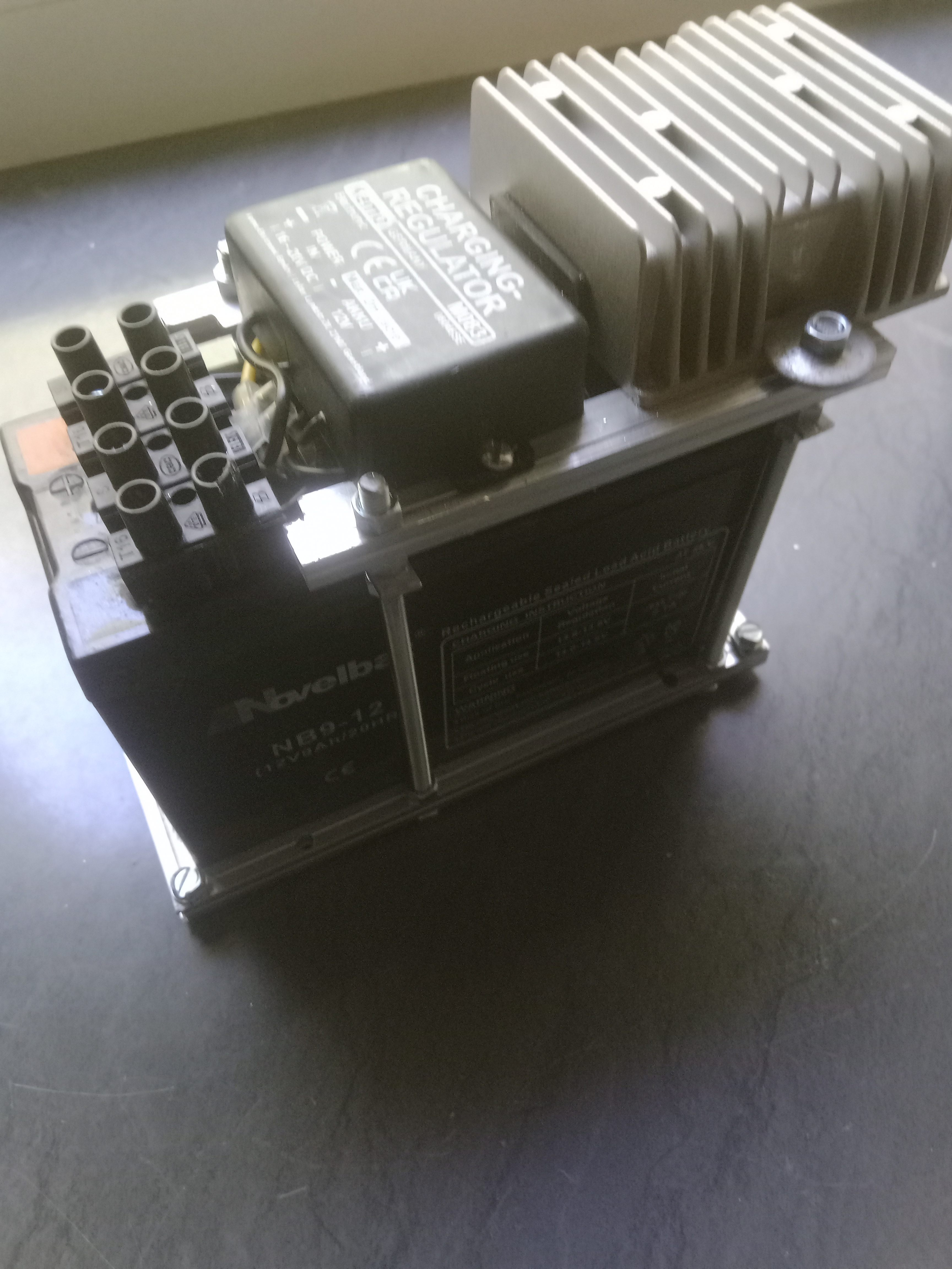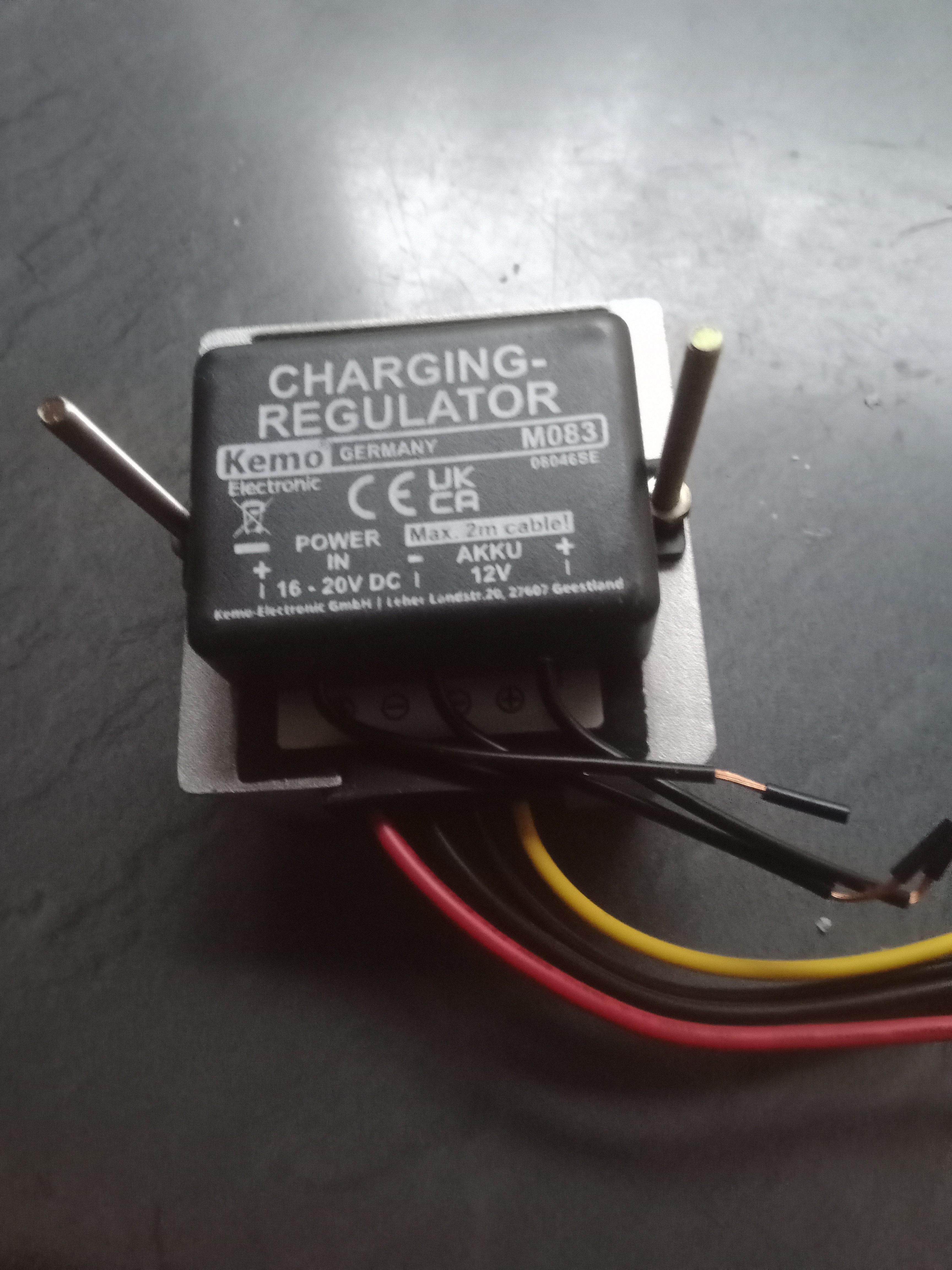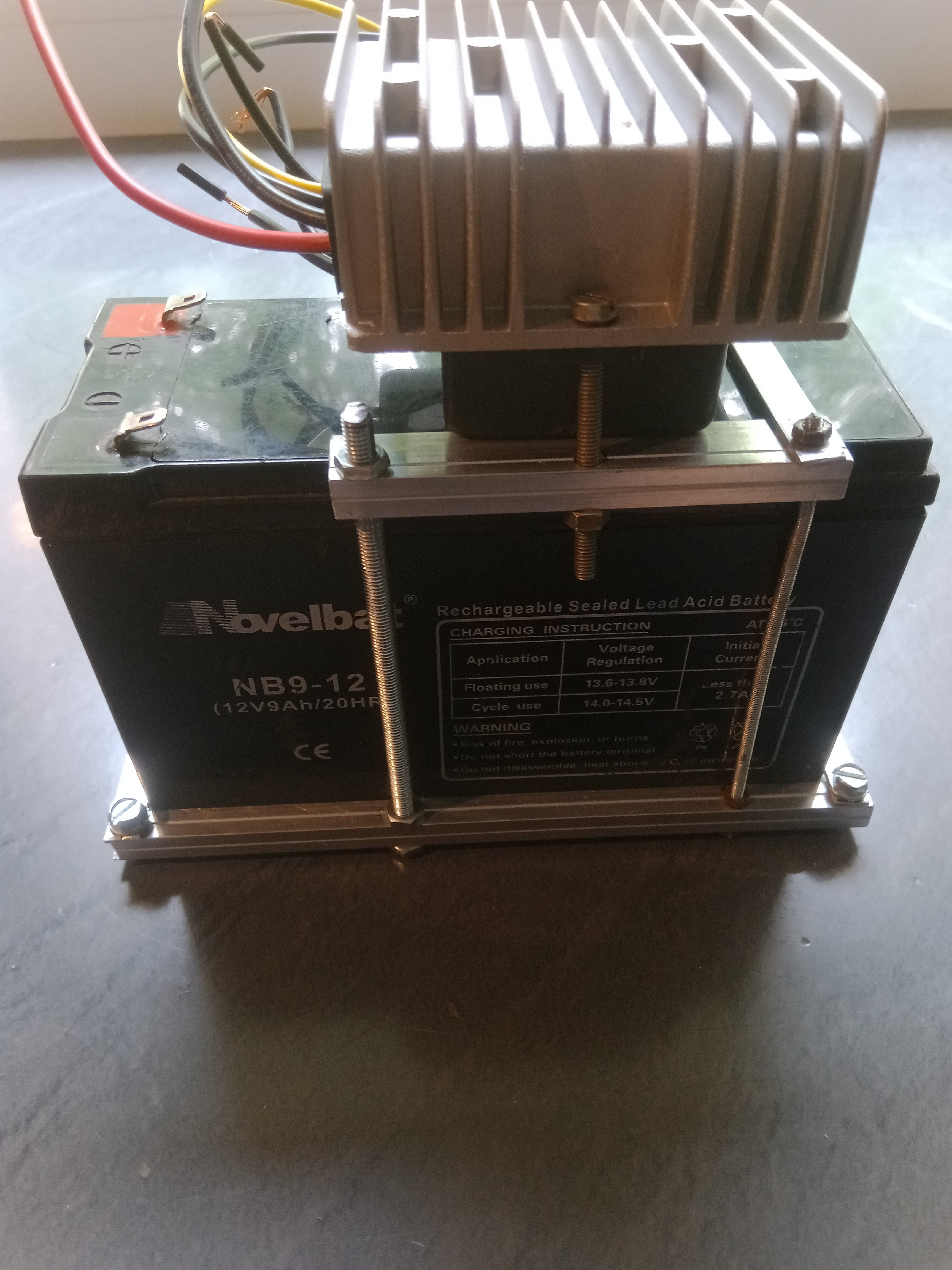 Damit mir die Einstellungen im Radio nicht bei jedem ausschalten verloren gehen,kommt jetzt ein kleiner Zusatzakku von 12 V/9 Ah dazu.Geladen wird er dann über die Hauptakkus per Spannungswandler 12 auf 19 Volt und nachgeschalteter Ladeelektronik auf Stufe 1 des ehemaligen Heizungsschalters.Dieser kompakte Klumpen wird dann vorn unter der Haube implantiert.