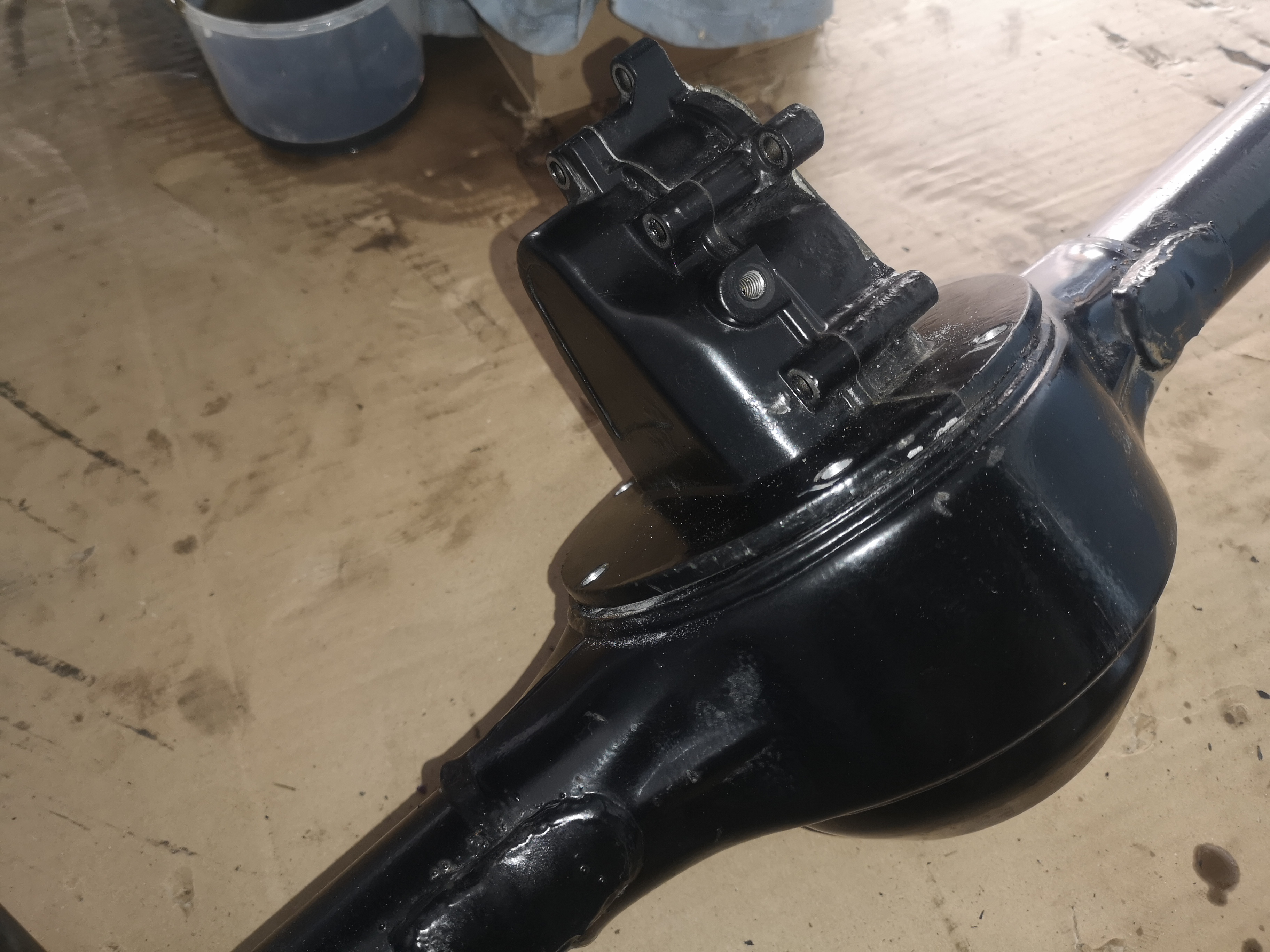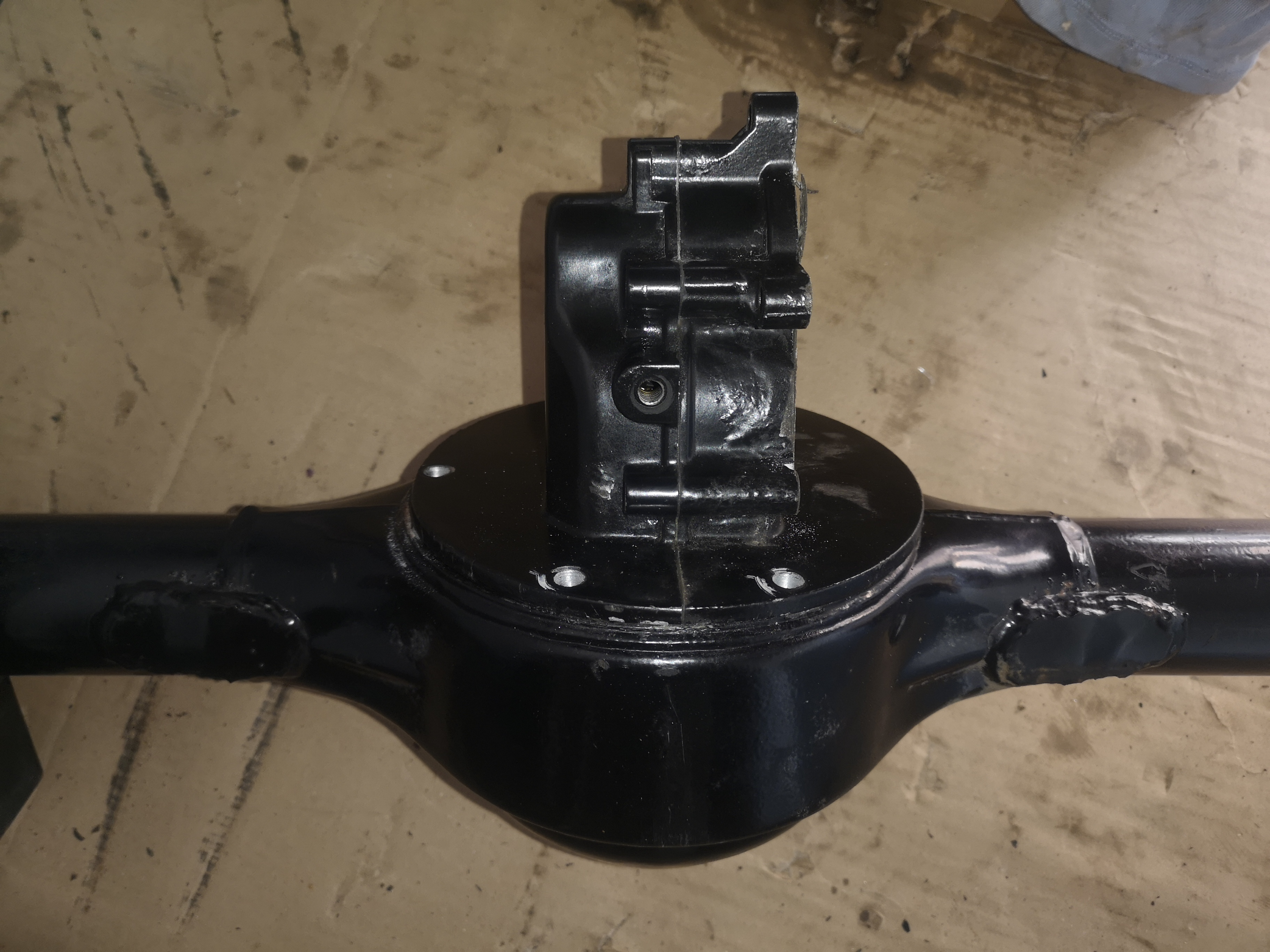 Tatsächlich fürchte ich, dass die Achse nach der Getriebemontage zusammengeschweißt wurde, und zwar nach Gefühl und Wellenschlag statt Richtbank.