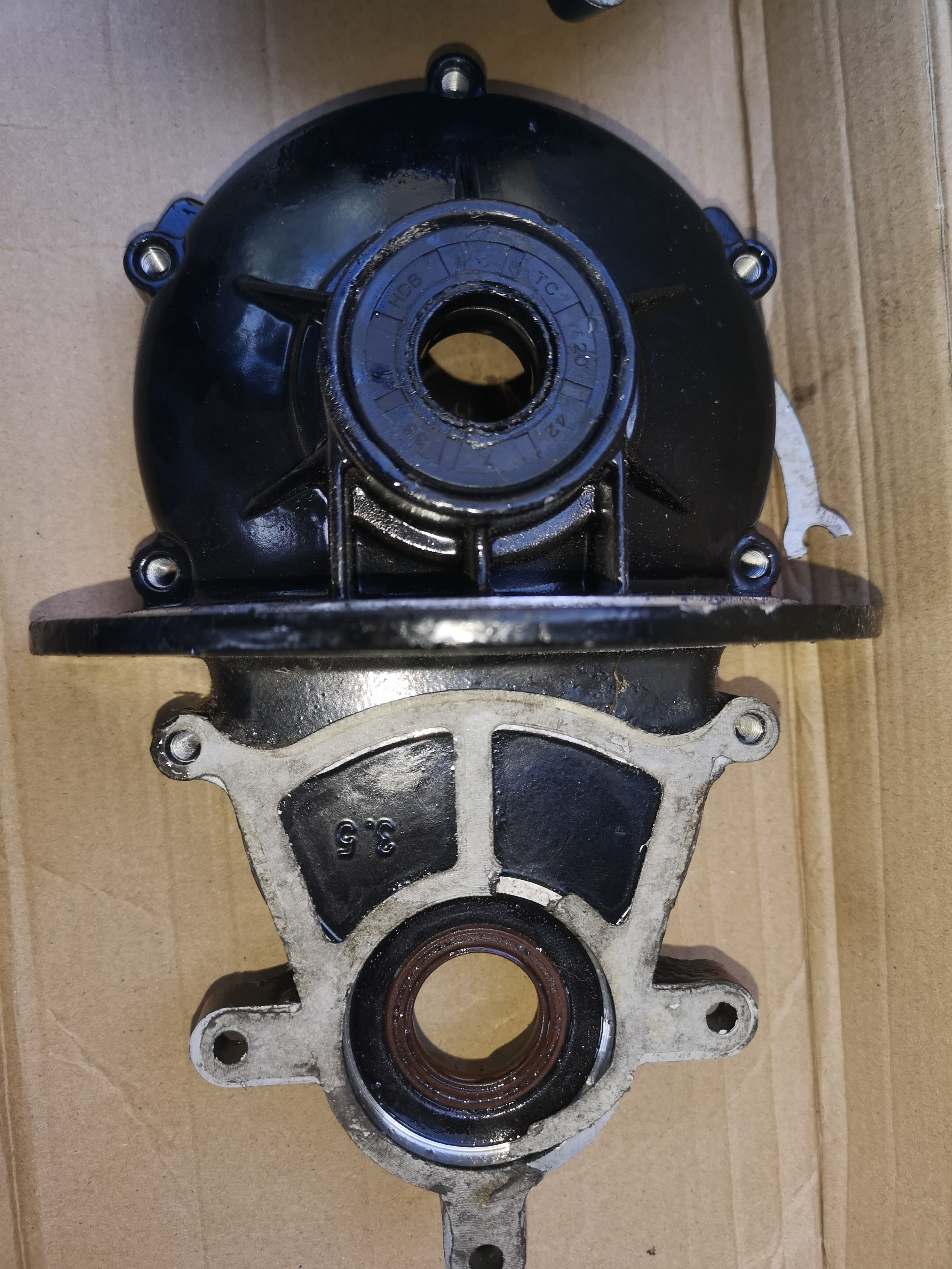 oben mit Entlüftungsschraube+Einfüllschraube M8x1,25x10mm SW10 ansenken damit Trichter entsteht, damit evtl. austretendes Öl zurückläuft Füllmenge 0,2liter Getriebeöl 75W80, Wellendichtringe Motor IØ24-25/AØ42/7mm FKM TC-24, 2x Steckachse IØ19-20/AØ42/7mm NBR TC19.