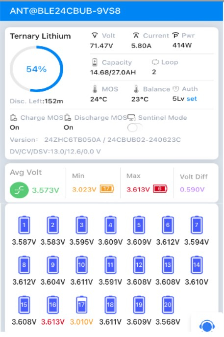 Den Akku kann man auch trainieren. Ist String 11 bei hoher Belastung abgesackt. Für so einen Fall habe ich mein BMS auf maximal = 255 sec Verzögerung programmiert, dann gehts schon wieder bergab. :lol: