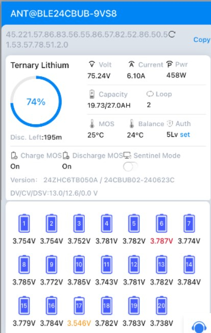Nova e-Grace von 2017, Umbau auf Li-Ion 20S 27Ah mit ANT-BMS mit Balancer