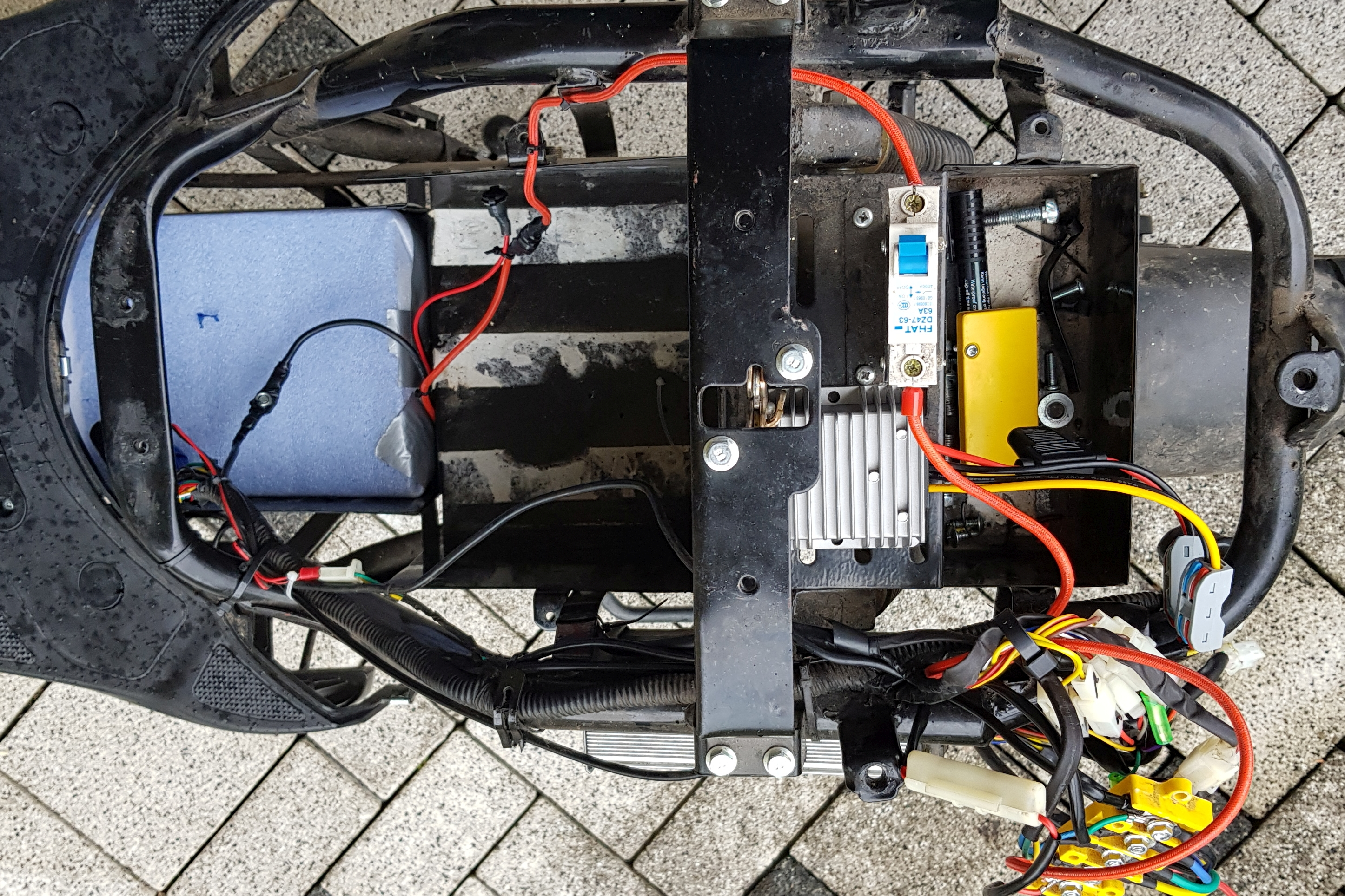 Alte Bleibatterien rausgebaut, Akkufach umgebaut und den Akku sicher verstaut. Schliesse alles an und mache den ersten Test, Motor läuft. Baue alles zusammen und will zur Testfahrt, nichts geht mehr.