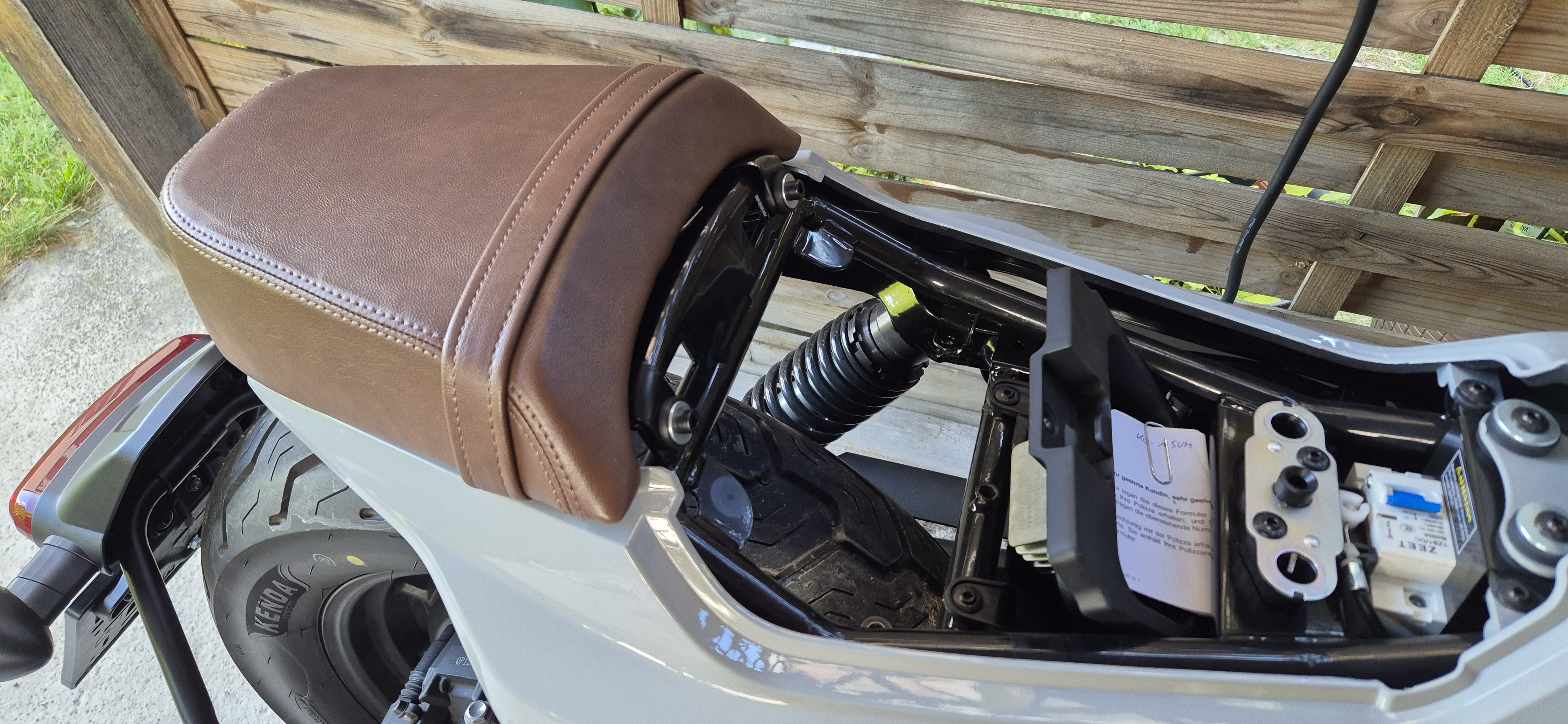 Schnabelwesen hat geschrieben: ↑So 29. Jun 2025, 23:44Das sieht ja schon mal gut aus. Das Schutz"blech" muss tatsächlich unbedingt hinten festgeschraubt werden, sonst vibriert das bestimmt kaputt. Du könntest eine flache Schraube mit Linsenkopf oder so nehmen und sie von oben durchstecken. Dann musst du zwar Scheibe und Mutter von unten dranfummeln. Aber oben unter dem Sitz trägt es weniger auf.