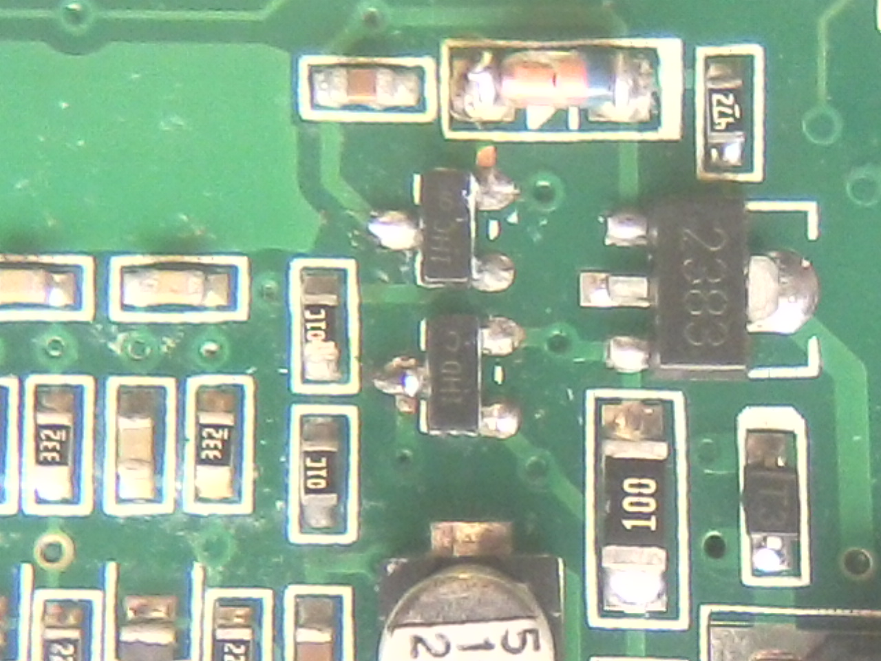 Nun habe ich das Steuergerät ausgebaut und aufgemacht. - Dabei ist mir sofort aufgefallen das da zwei kleine SMD- Transistoren (oder was auch immer das sein mag) bei Betrieb offenbar sehr heiß werden.