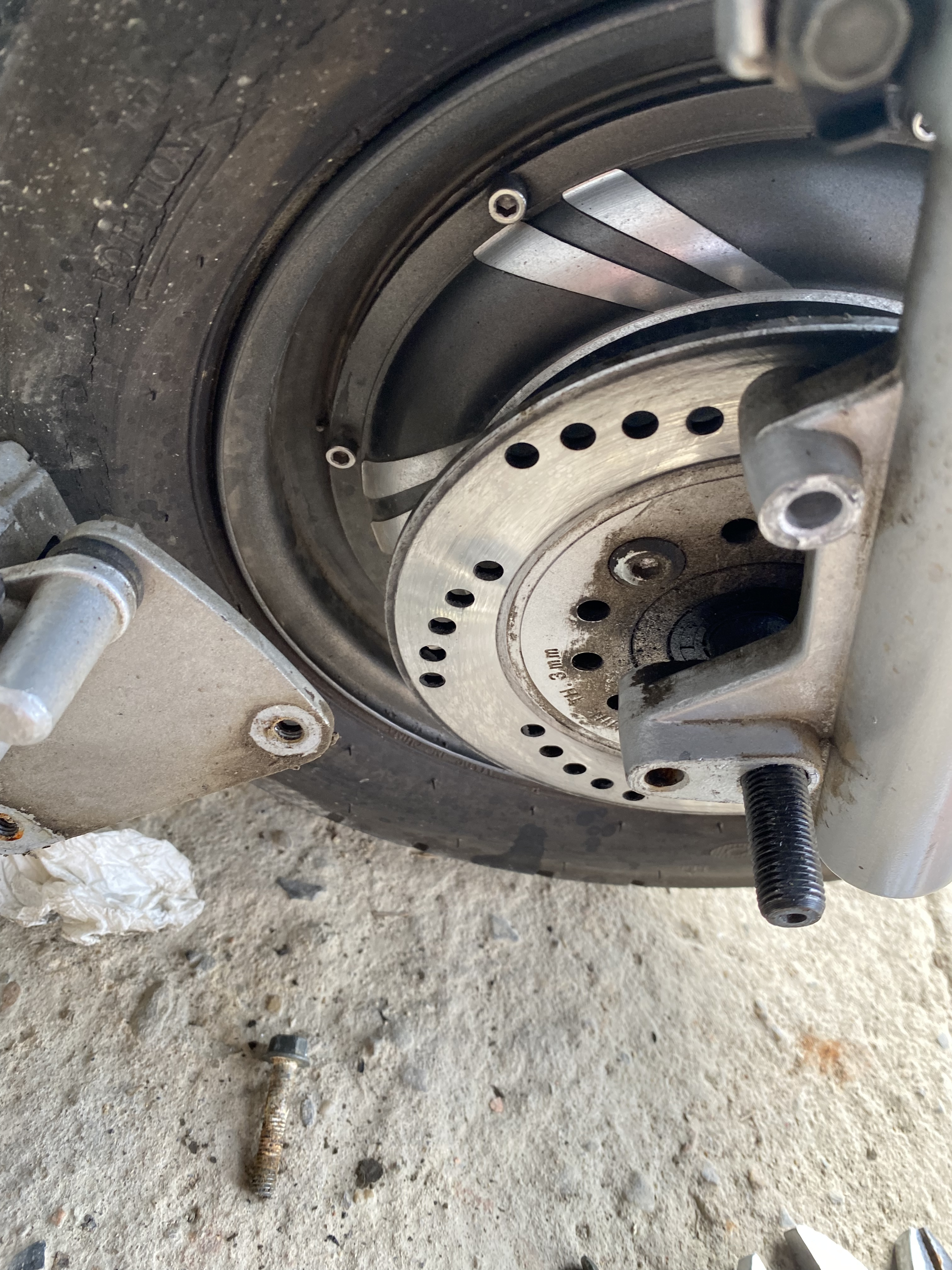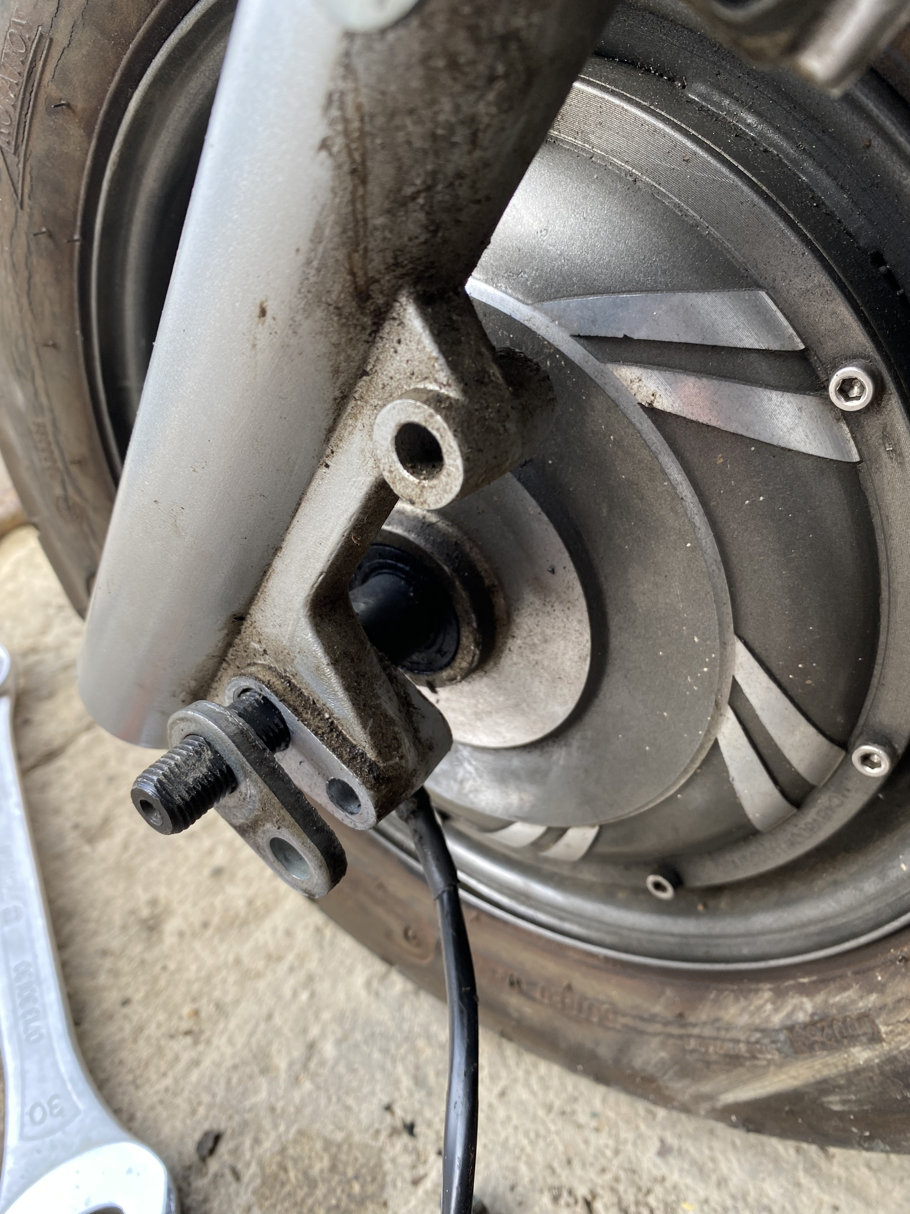 Der Roller hat ja zwei Motoren das Hinterrad zu demontieren war kein Problem nun stehe ich aber auf dem Schlauch wie ich das Vorderrad aus der Gabel bekomme.