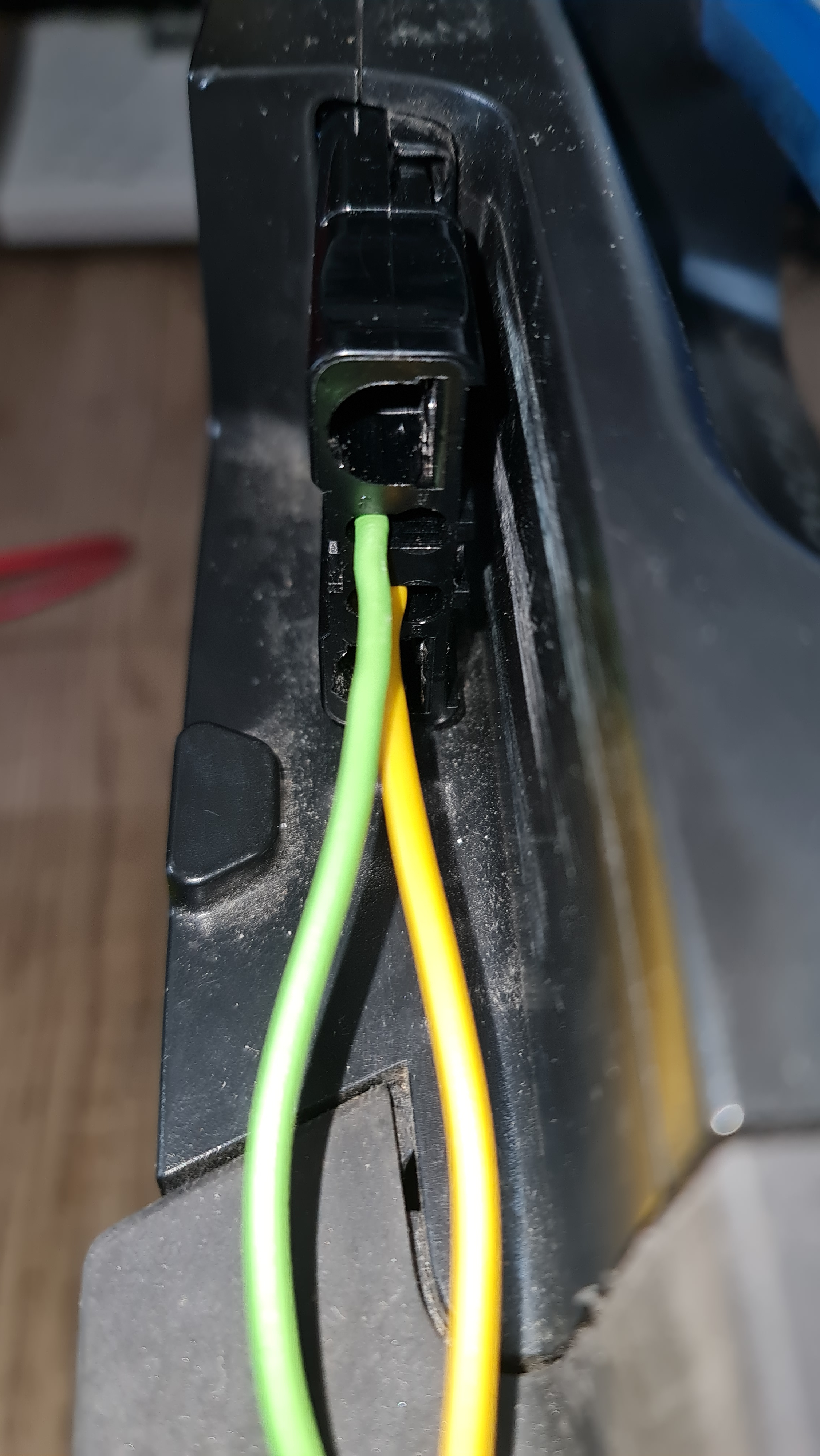 über diese beiden zusätzlichen dünnen Pins im Akku-Stecker muss der Roller aber doch mit dem BMS im Akku kommunizieren (evtl. RS485-Verbindung).