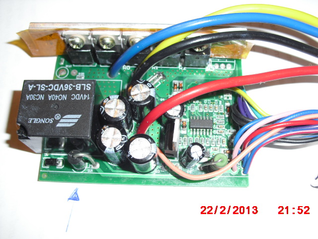 Der DC motor-controller ist wahrlich nicht rostig. Ich würde mir einmal die Dioden anschauen: Eine ist parallel zur Relaisspule und die andere parallel zu den 5 Stück parallel geschalteten MosFets. (Mache Dir aber nicht zu viel Hoffnung, daß du das Ding wieder zum laufen bekommst)