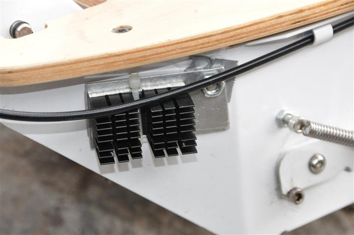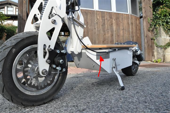 Anbei noch zwei Bilder des Scooters. Das nun provisorische Kühlblech (1.Bild) mit 1mm Abstand zum Chassis wird noch mit einem CPU-Kühlblech versehen sobald ich die Wärmeleitpaste hierfür habe.