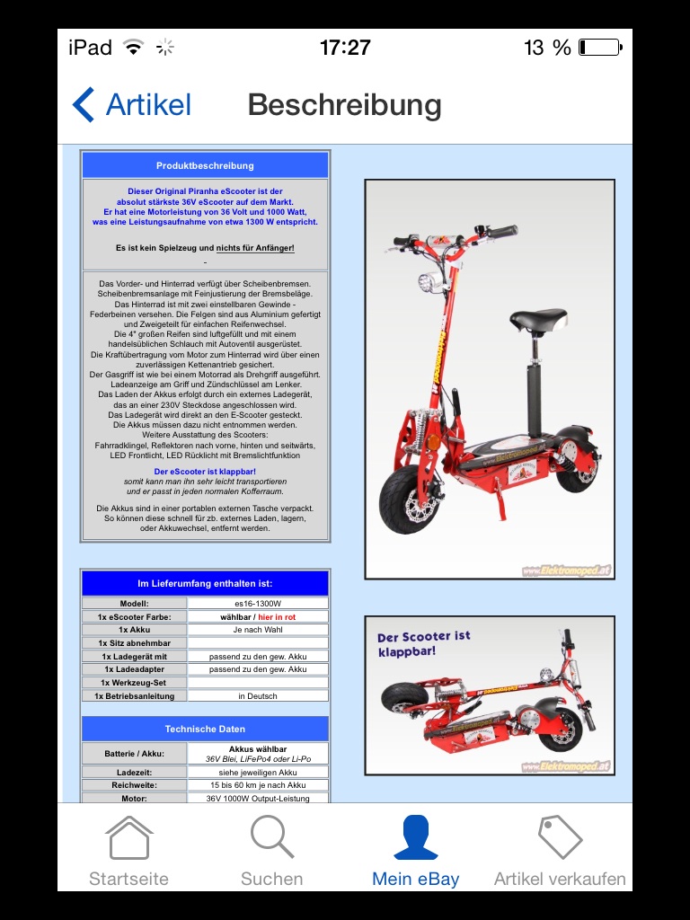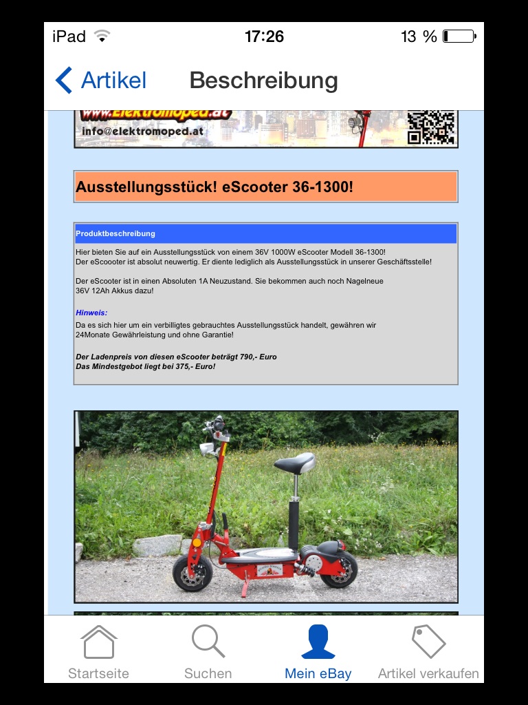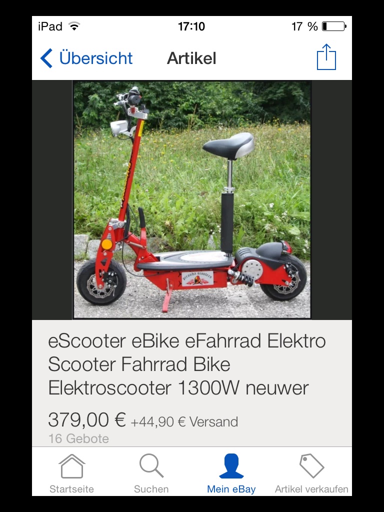 Nun habe ich eben mein E Scooter bei Ebay in Österreich ersteigert bei Elektromoped.at.