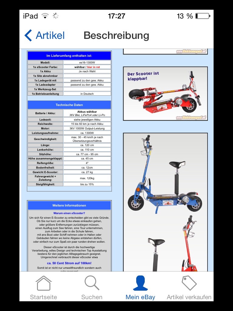 Weiters sollte er nicht mehr als 500 kosten und die Reichweite, das Wichtigste, sollte min- 35-45 km haben.