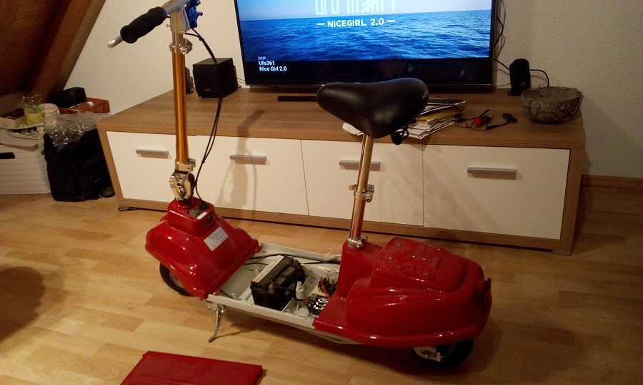 Der Scooter funktioniert soweit. Nur hat der Vorbesitzer unwissenderweiße zwei Kabel vertauscht. Somit ist der Motor immer angelaufen sobald er an der Batterie hing. Die zwei + Kabel von der Ladefunktion und Motor waren vertauscht. Nach dem Umstecken läuft der Motor nicht. Der Scooter hat keinen Gasgriff sondern einen Ein/Aus Hebel. Wer kennt dieses Modell? Vielleicht finde ich so einen Schaltplan um zu überprüfen ob noch weitere Kabeln vertauscht sind. Viel Dank.