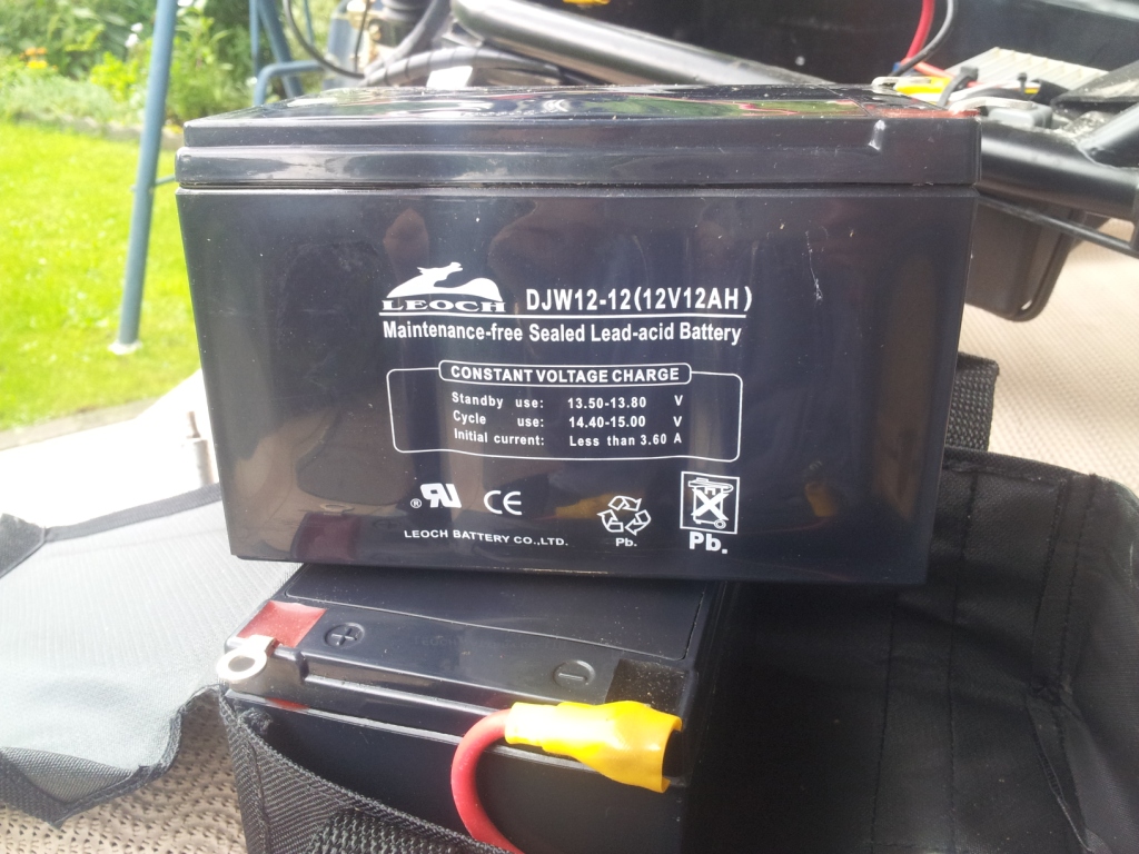 Der Vorbesitzer hat den Roller das letzte mal 2004 angemeldet gehabt. Seitdem wurden die Batterien auch nicht mehr geladen und sind vermutlich jetzt sowieso nicht mehr zu gebrauchen, sollen aber ohnehin nicht so besonders gewesen sein (max. Reichweite ca. 15-20 km unter optimalen Bedingungen, Vmax ca. 20 km/h). Nun zu meiner eigenentlichen Frage: Ich bin leider absolut kein Techniker, aber theoretisch müsste doch die Akkuentwicklung in den vergangenen 10 Jahren ziemlich weit vorangeschritten sein. Kann ich denn einfach so einen neuen Akku verbauen, und wenn ja, welchen? Bisher waren 2 Akkus parallel (oder in Reihe?) geschaltet (siehe Bild).