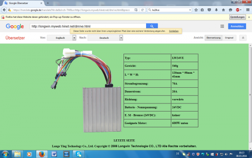 Er hört auf den schönen Namen "JAD-PK-36V" und ist für brushless Motoren ausgelegt. Nach meinem bescheidenen Kenntnisstand kann er auf 24 Volt umgestellt werden. Dazu muss er wohl geöffnet und per switch konfiguriert werden. Wer davon Ahnung hat ist klar im Vorteil. Ich gehöre nicht dazu.