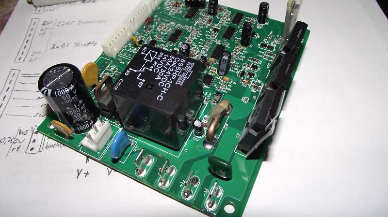 -Stellreglergriff ("Gasgriff") Fahrregler nicht regelbar. Widerstand ca.1,6KOhm.Wobei 2 Dreiaderleiungen irdenwie/wo drin hochgehen. Eine scheinbar noch für LED im Griff.Ist aber am Steckerende zum Steuergerät nirgend gesteckt gewesen.