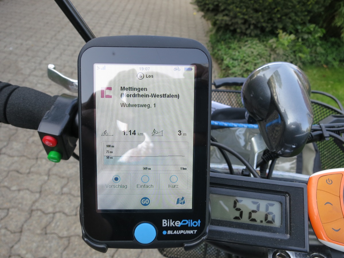 Zum Nachhausefinden: Ich bin auch der Auffassung, dass, gerade wenn man als Zweiradfahrer mit gemütlichen Geschwindigkeiten unterwegs ist, man doch eh jeden Grashalm kennt und weiß, wo der steht. Und auch Harrys E-Scooter-Einsatzgebiet ist beschränkt, so dass sich ein solches Teil eigentlich erübrigen müsste. Ausgenommen natürlich, er nimmt die Roller seiner Frau und sich im Auto mit in den Urlaub und düst dort in unbekanntem Terrain herum.