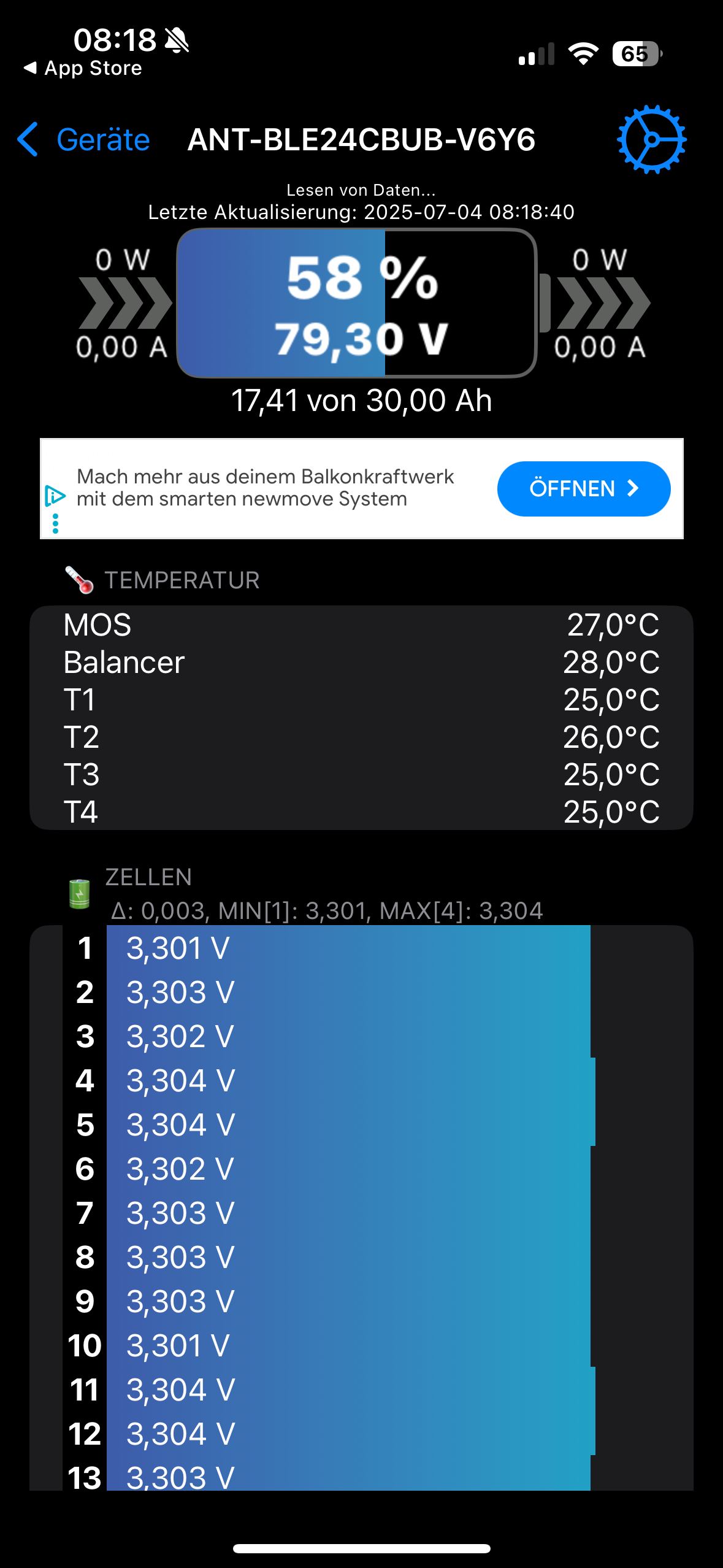 Bin auf den Trichter gekommen, mich in meinen BT Einstellungen meines Smartphones mit der Batterie zu verbinden. Finde ein „BMS-Ant…“ kann mich aber nicht koppeln :|