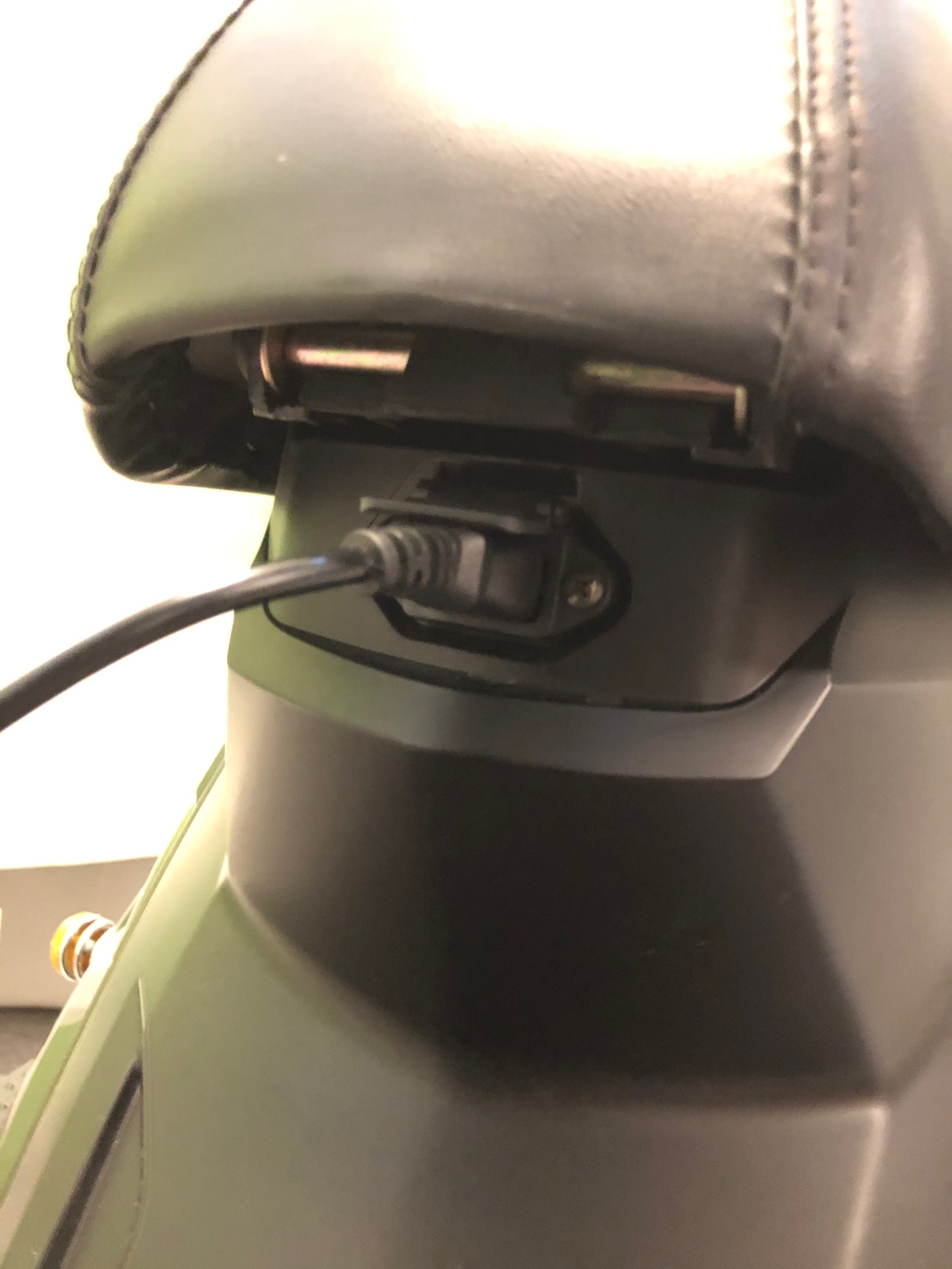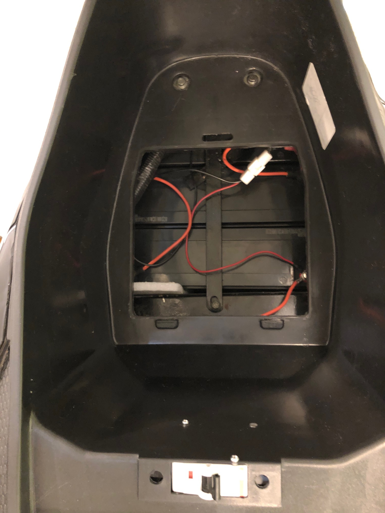 Ansicht Helmfach mit Akku´s. (Der kleine weisse Stecker führt vom Akku zur Ladebuchse)