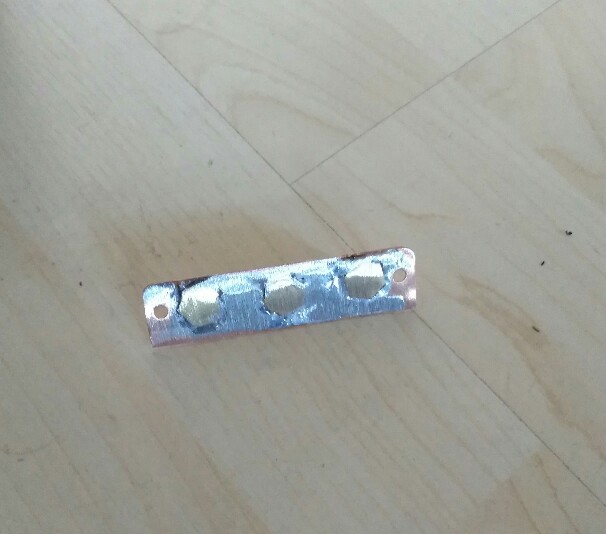 Erst mal Kupferblech mit Messingschrauben verlötet und flach geschliffen, so muss nachher nicht gegen gehalten werden und der Querschnitt verdoppelt sich auch.