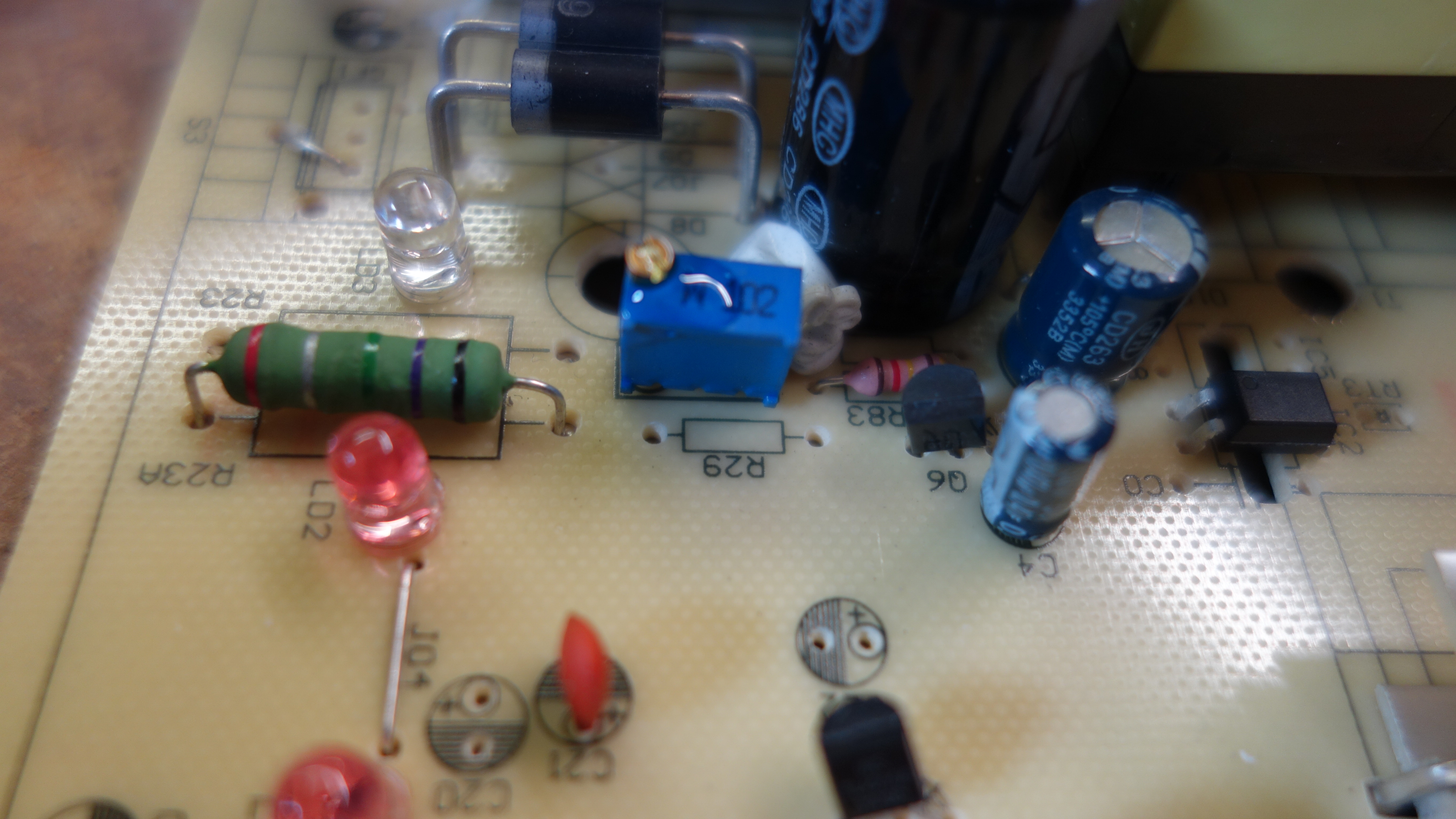 Im defekten Ladegerät vom 60V Lithium-Ionen-Akku, befindet sich ein Trimm-Potentiometer (W102).