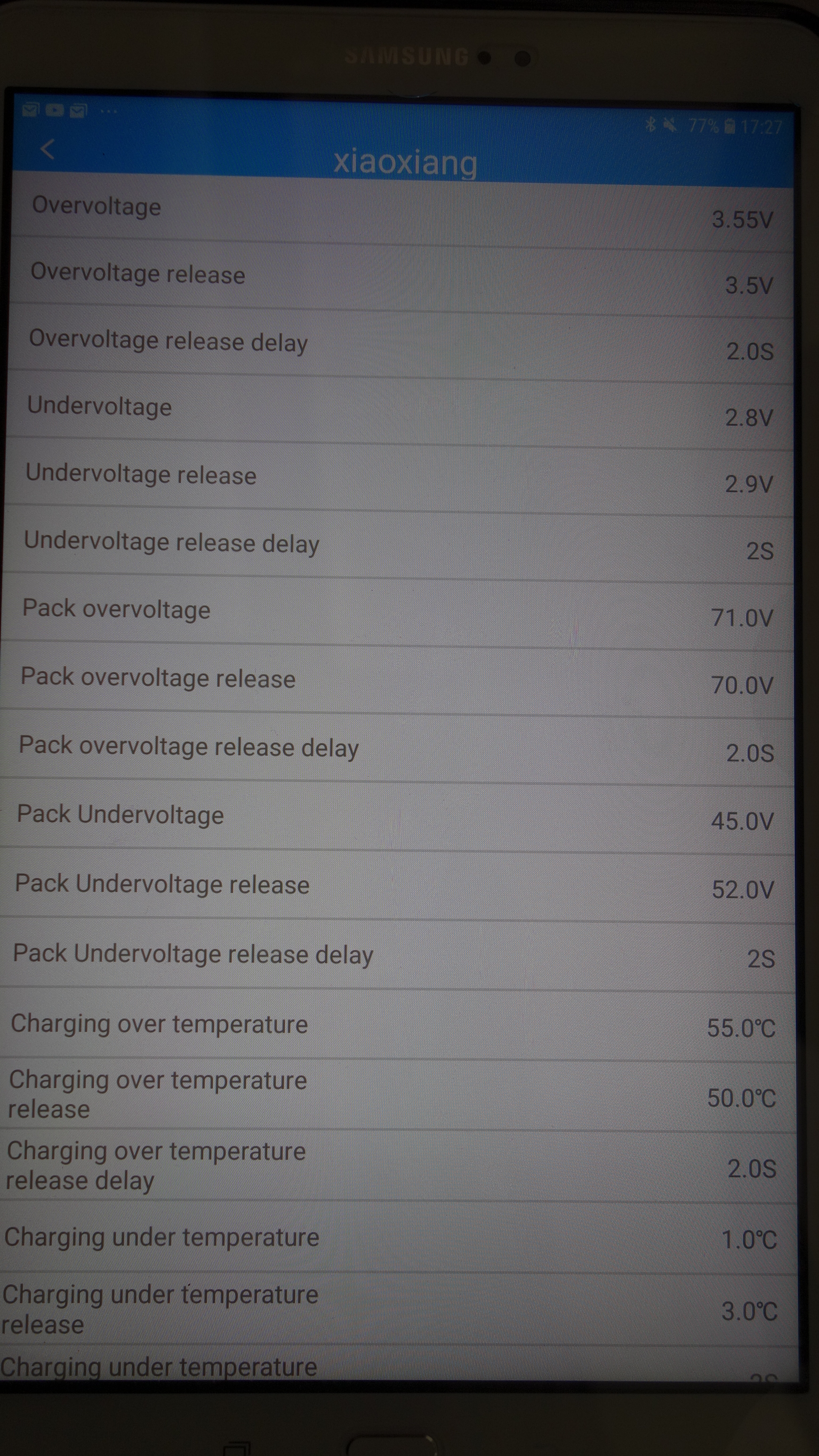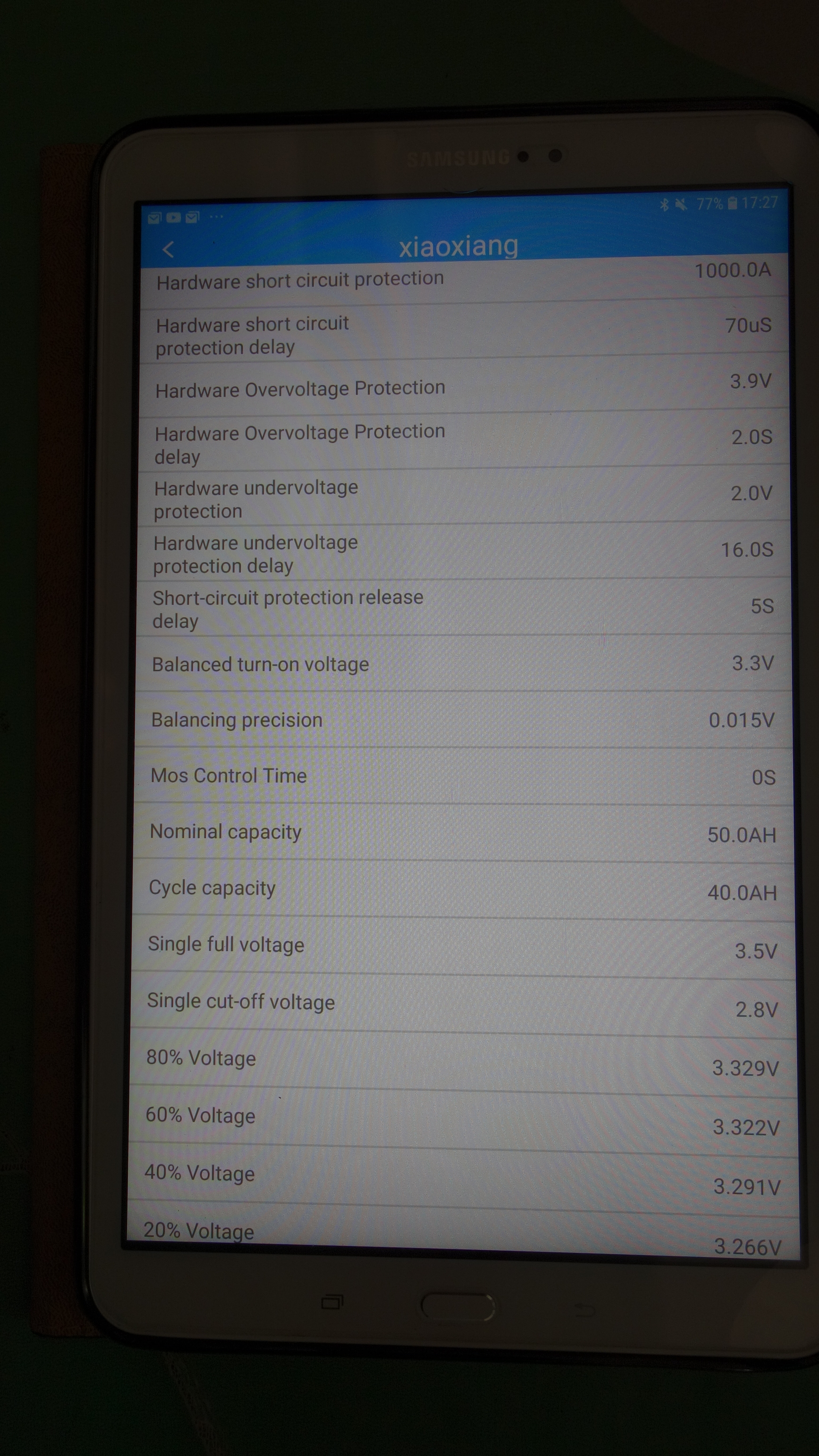 Ich vermisse dort Einstellungen zum Balancing. Das kann bedeuten, dass es diese bei Deinem BMS nicht gibt, Du keinen Zugriff auf diese Einstellungen hast (also auch kein "Read-Only") oder Du sie vielleicht auch einfach bislang übersehen hast.
